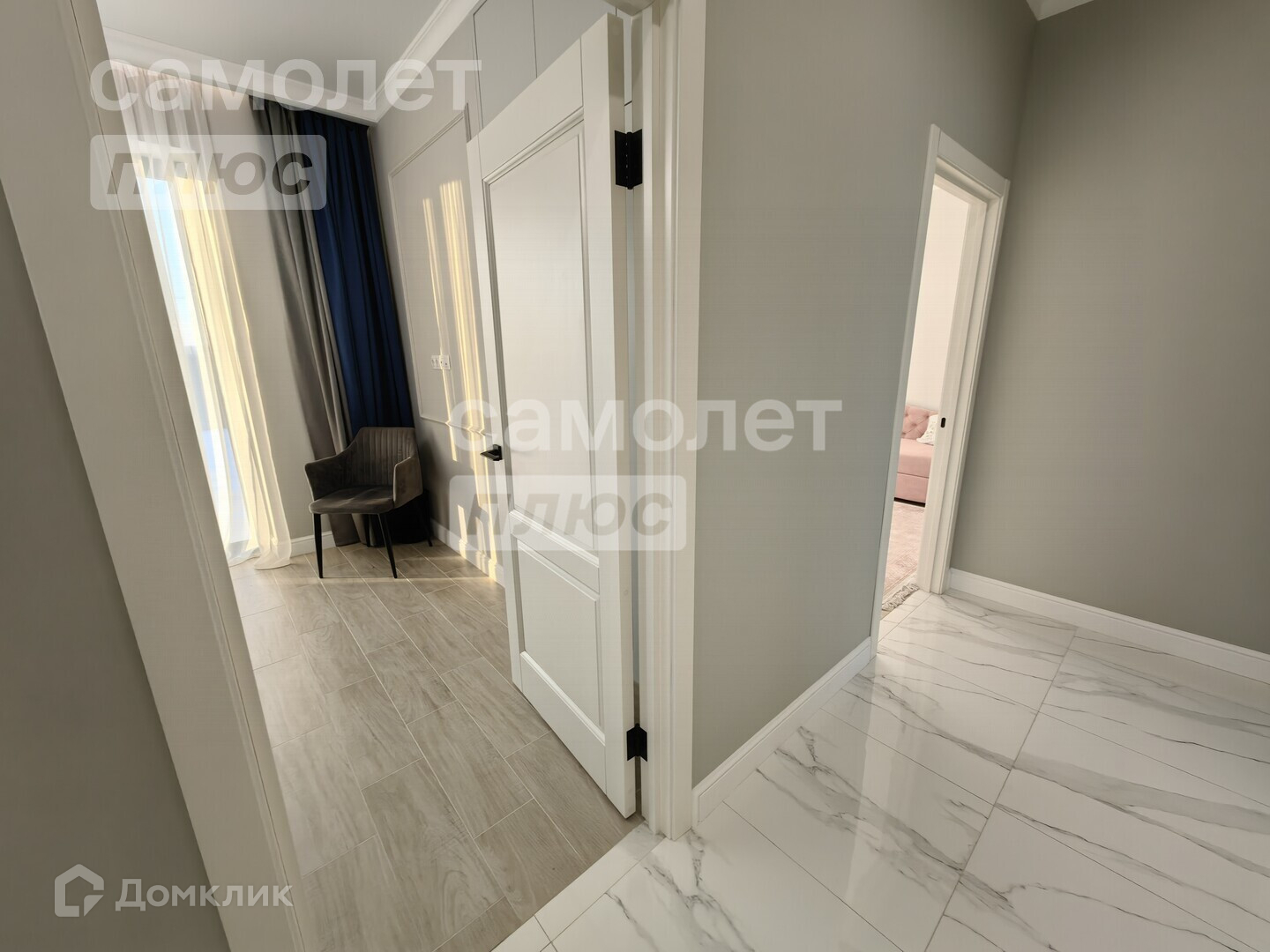 В 2х спальнях расположены ниши под шкафы, что очень удобно для визуального восприятия пространства. Большие окна в пол. Поступления большого количество света.