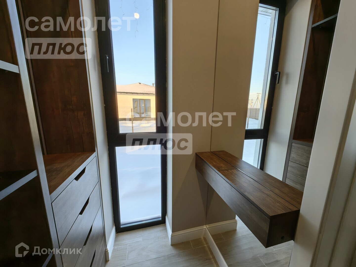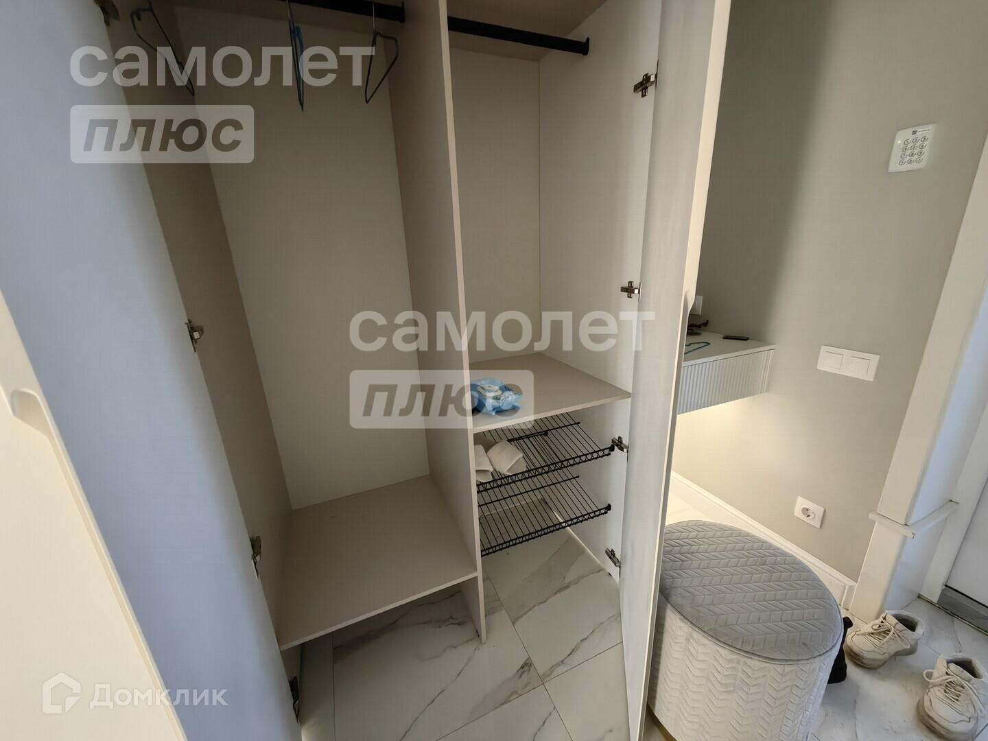 Просторный холл с местом для установки шкафа-купе и банкетки.