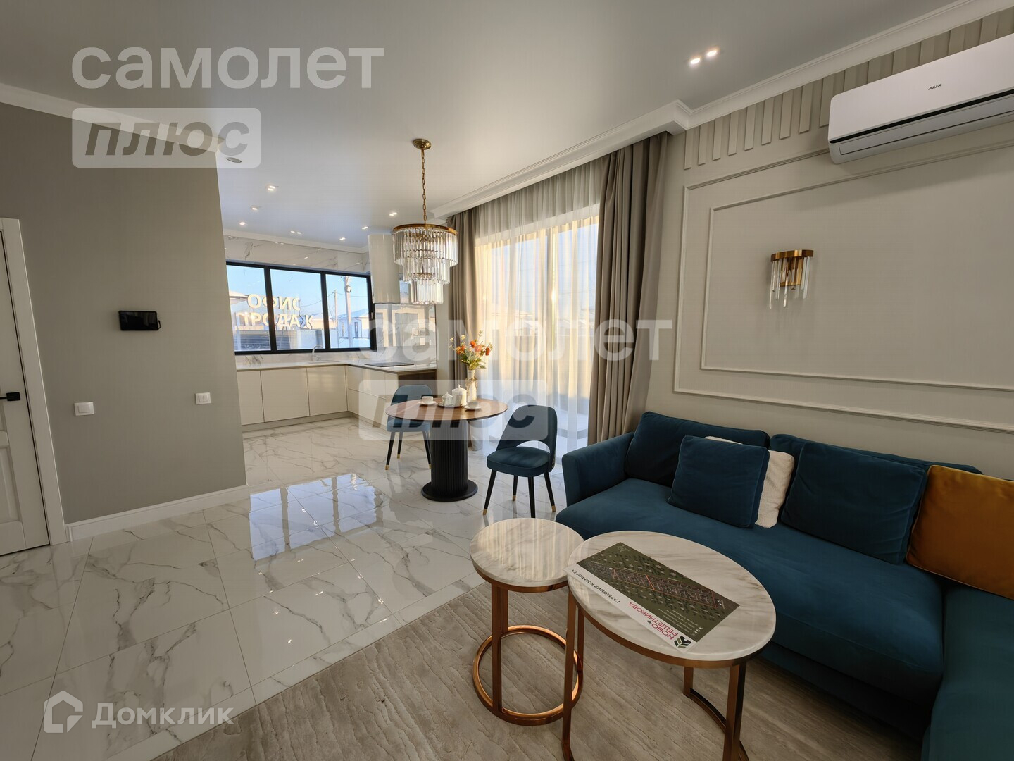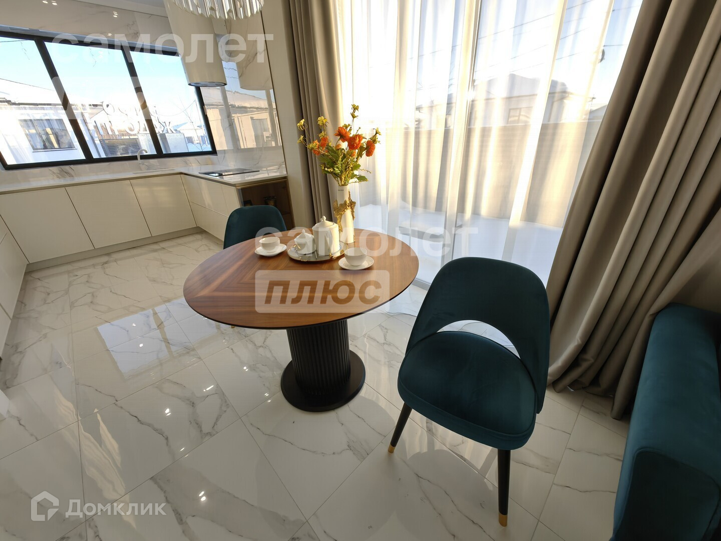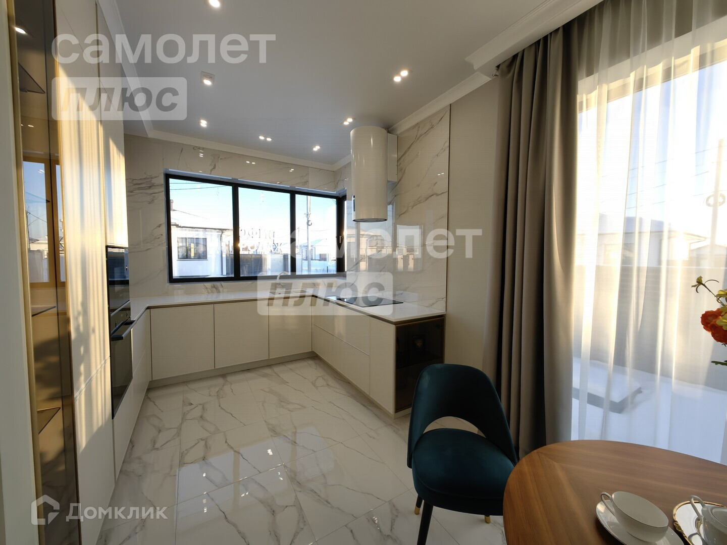 Большая кухня-гостиная с выходом на террасу в 34,7 м2 идеальна для семьи из 3х человек, а так и для большой семьи и посиделок с друзьями.