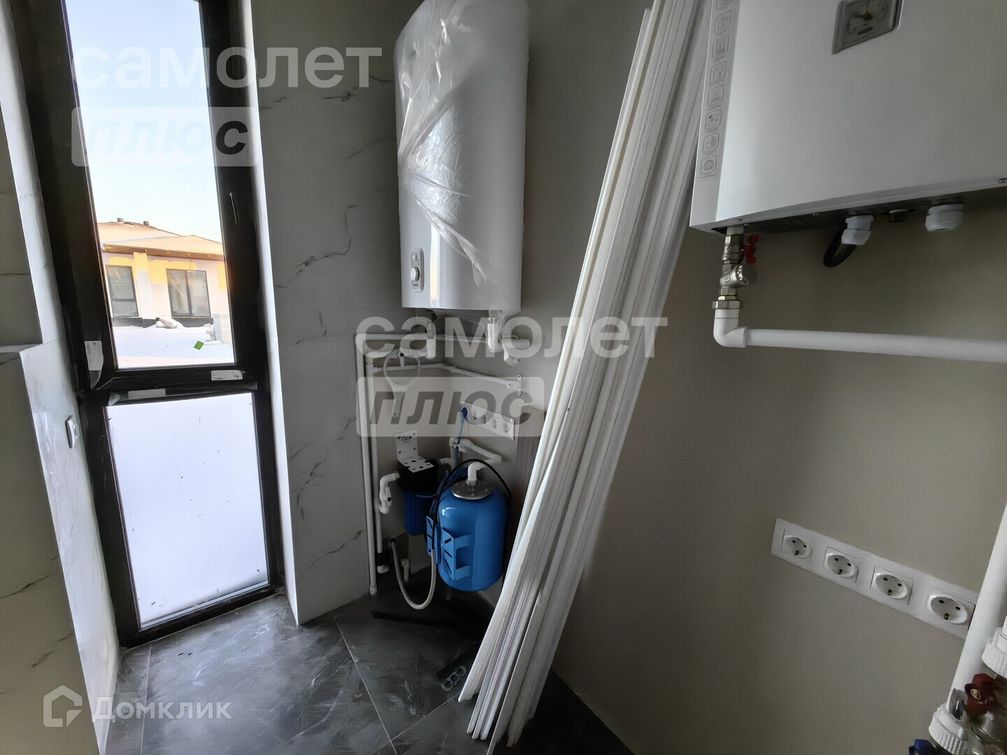 Отдельная котельная: выведены все коммуникации, система теплого пола, котел отопления, нагревательный котел, установлена фильтры грубой очистки воды.