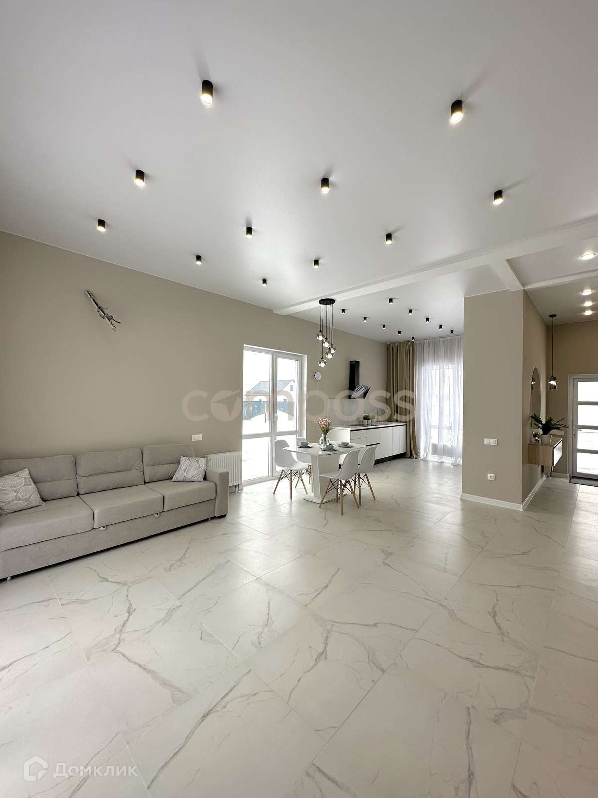 Кухня-гостиная, 3 спальни, гараж, дом с ремонтом, частичная комплектация мебелью, встроенной бытовой техникой, участок выровнен, заезд отсыпан щебнем, установлен забор с 4х сторон, смонтированы распашные ворота и калитка.