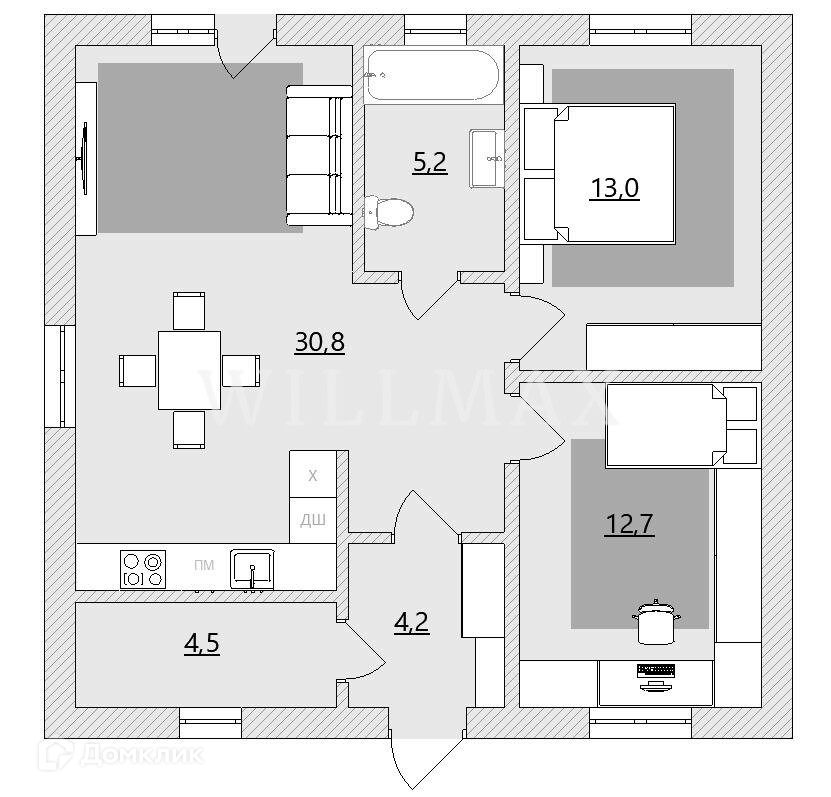 Общая площадь 75 м2