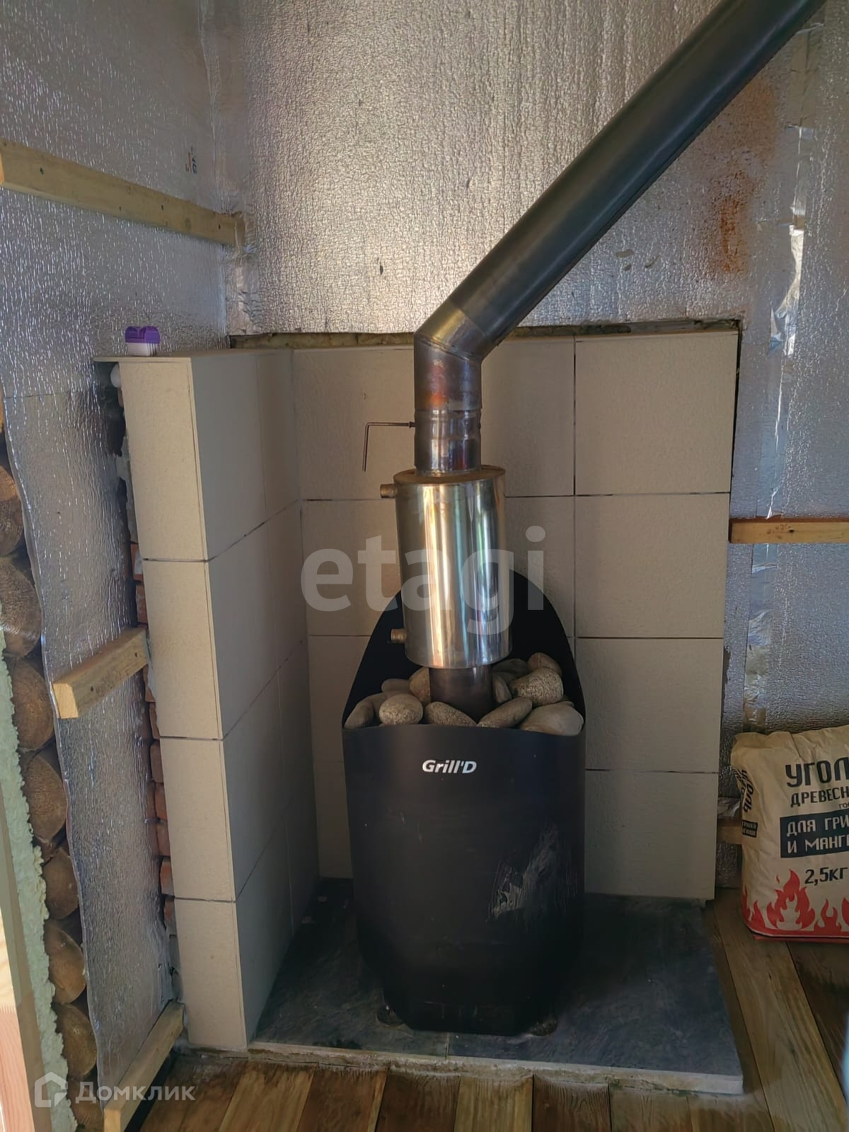 2-этажный дом-баня из бруса. На первом этаже: открытая веранда, комната отдыха/кухня, баня (помывочная, парная). На втором этаже: комната, лоджия. Первый этаж готов полностью, второй без отделки.