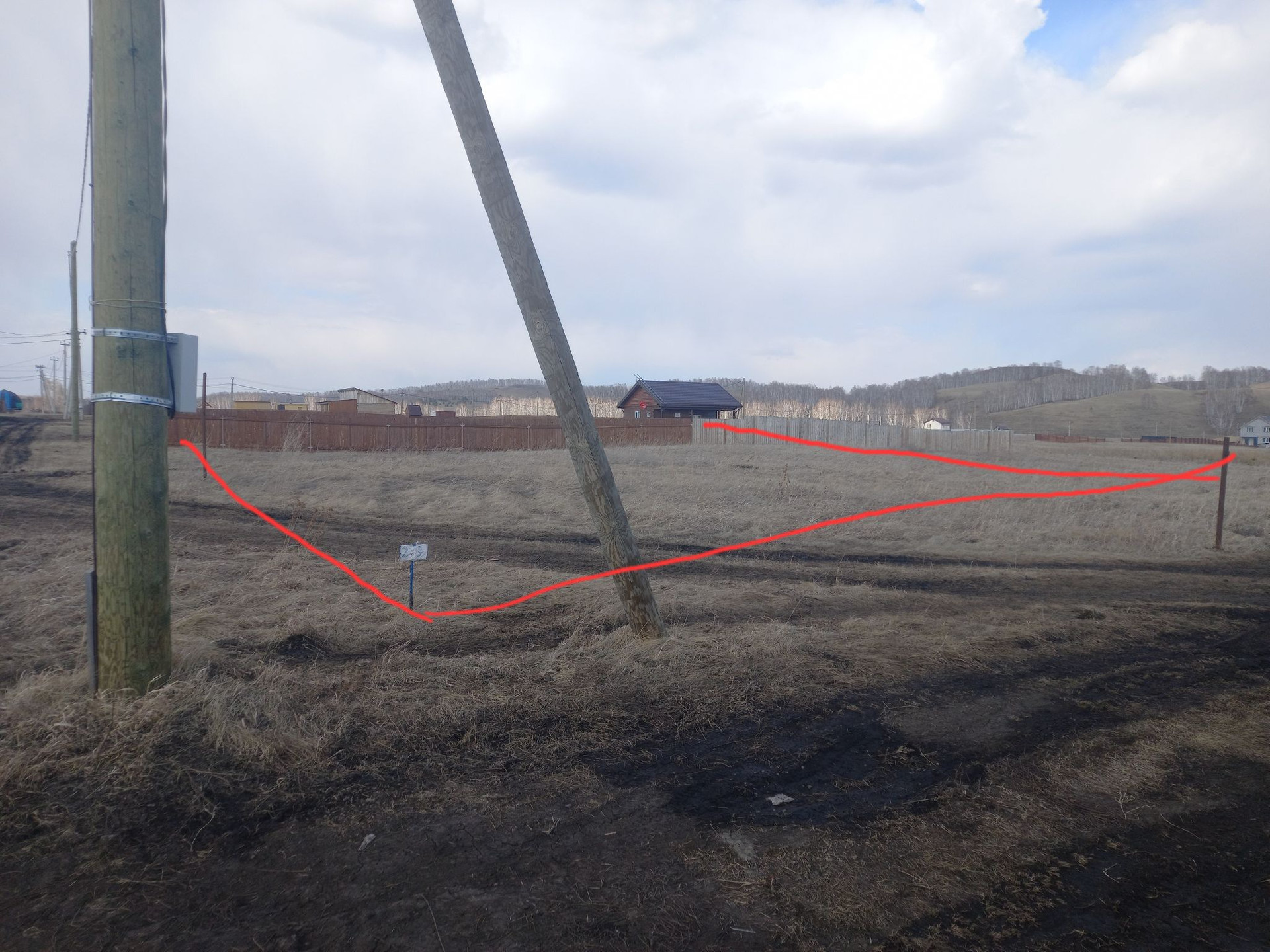 место нахождения за деревней Замятино,  соседи строятся, электричество подключено счётчик на столбе.
