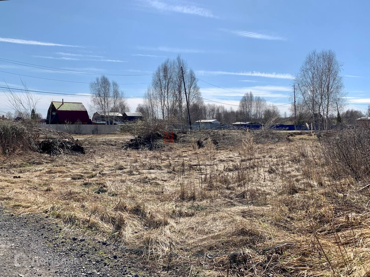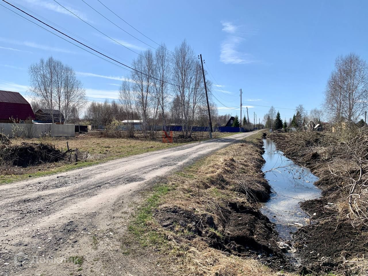 Электричество проходит вдоль границы участка, не подключено.