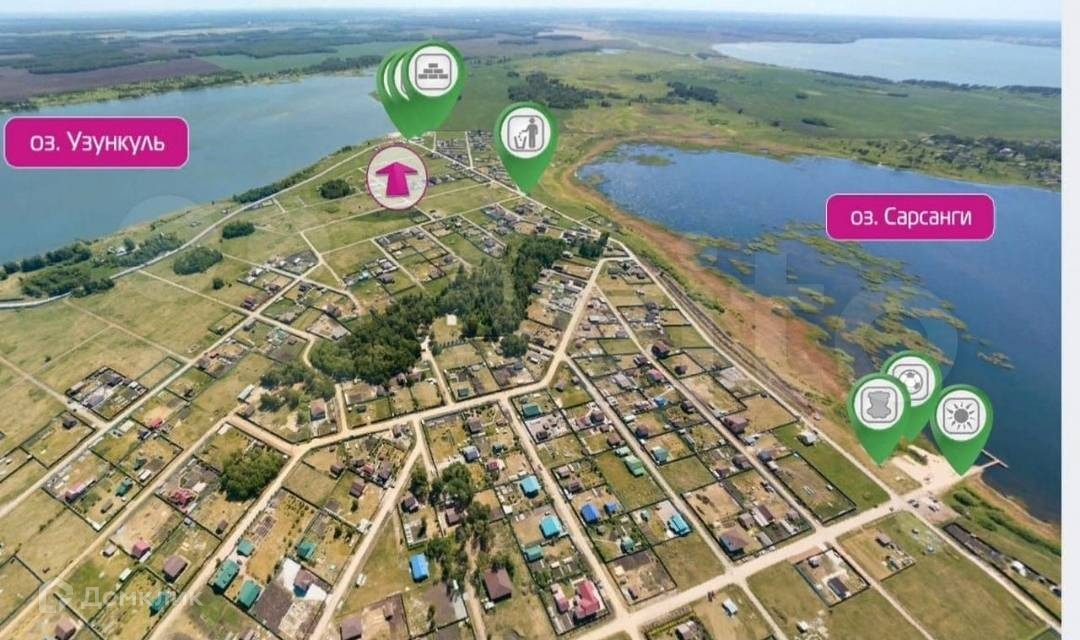 - Посёлок находится вблизи города Челябинска (~20 км от Челябинска, в сторону Екатеринбурга), в живописном месте среди нескольких чистых озёр: Сарсанги и Узункуль, Теренкуль, Касарги.