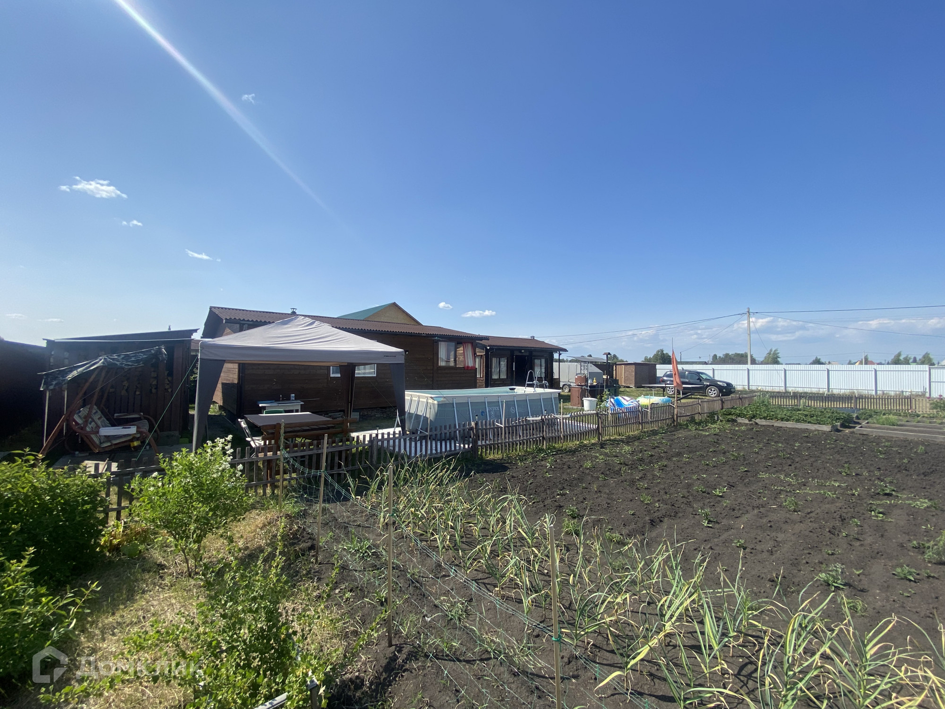 Дом Баня 6*8м. Беседка-Летняя кухня 4*5. Контейнер 20 футов. Огород, грядки, посадки. 3 теплицы 3*6. Туалет. Еврокуб. Бассейн каркасный 2*4. Качели. Дровник, шатер-навес со столом. Умывальник. Хозблоки 2 штуки. Скважина 27 метров. Газ можно завести.