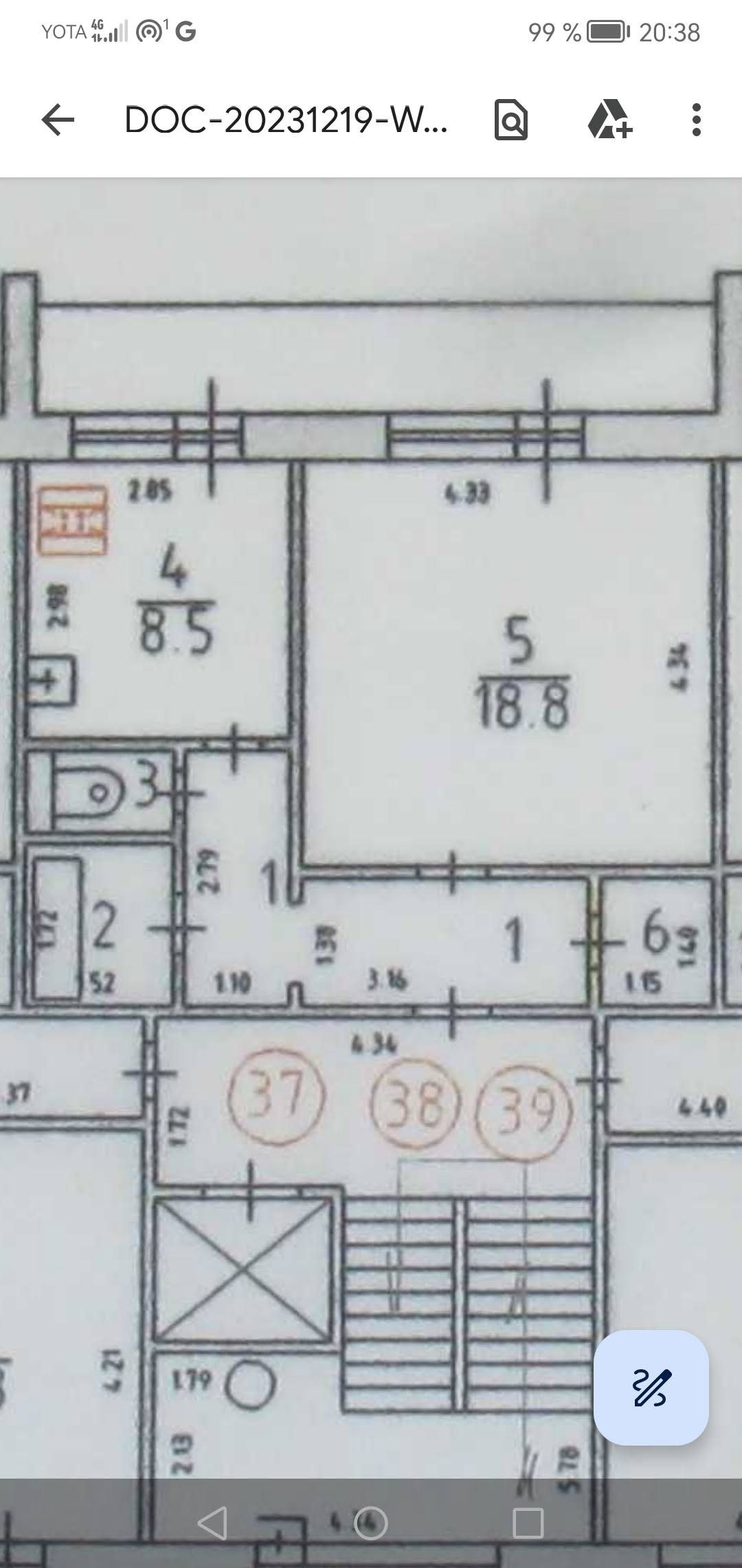 Общая площадь 42.6 м2