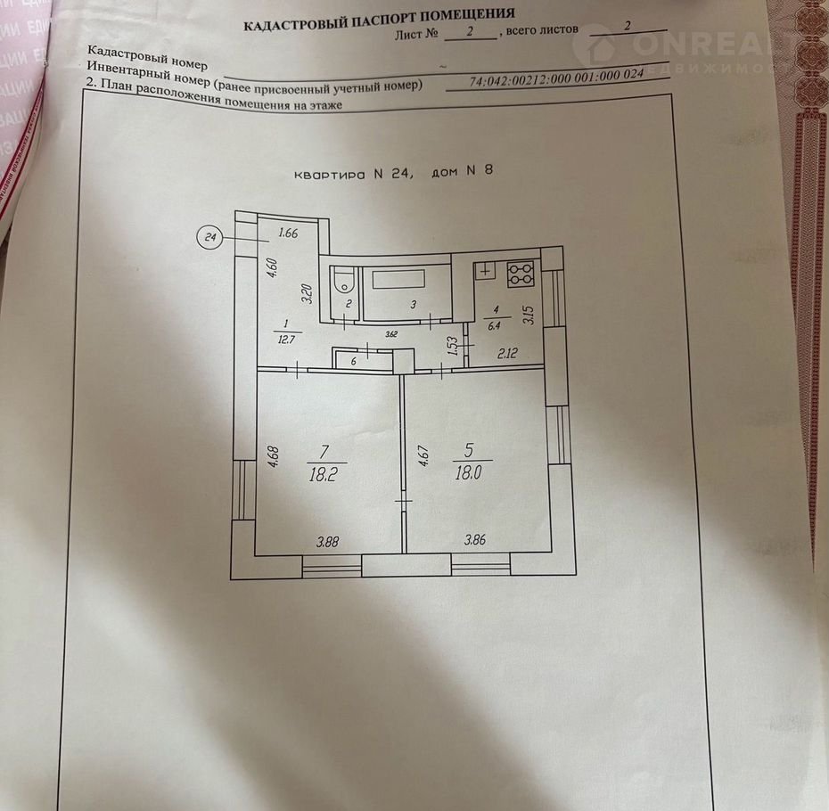 2-комнатная квартира, 61.1 м2, этаж 2 / 4, на продажу в Трёхгорном, улица Калинина, 8