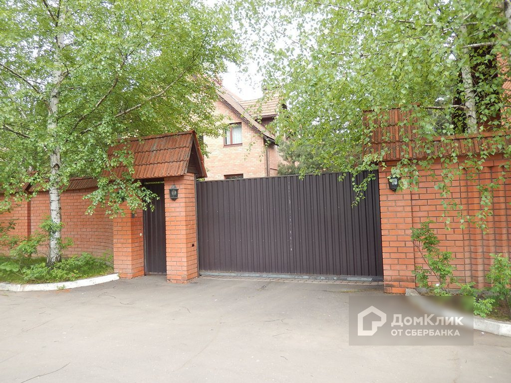 Участок 22,3 сотки с лесными (сосны, березы) и садовыми (яблони, вишни) деревьями, огорожен (фасад — кирпичный, автоматические откатные ворота).