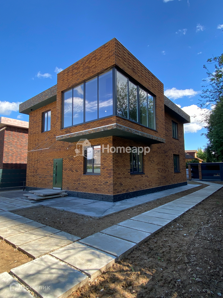В 5-ти минутах ходьбы от метро «Троицк» (открытие в 2023 году). Дом построен в стиле современного минимализма в центре города Троицк с большим панорамным выступом на две улицы с плоской кровлей.