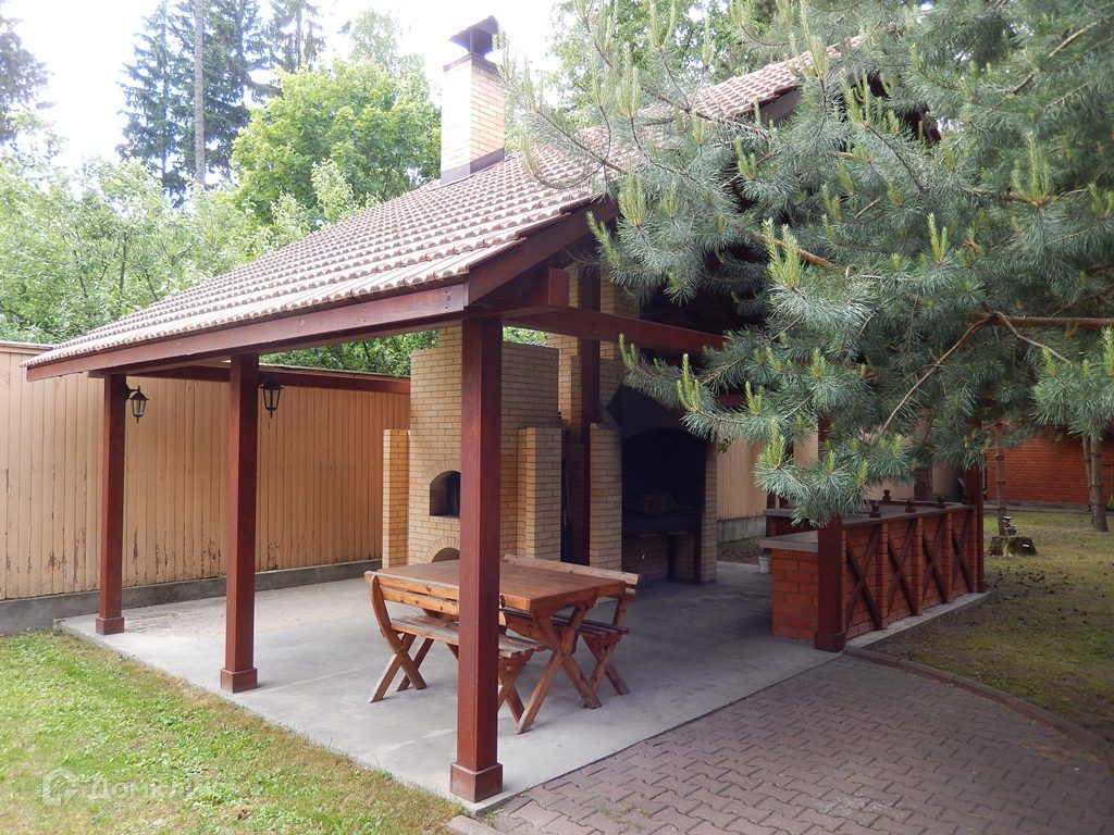На участке выполнен ландшафт (газон, декоративные посадки), выложены дорожки и площадка на 5 м/мест, обустроена мангальная зона, есть беседка.