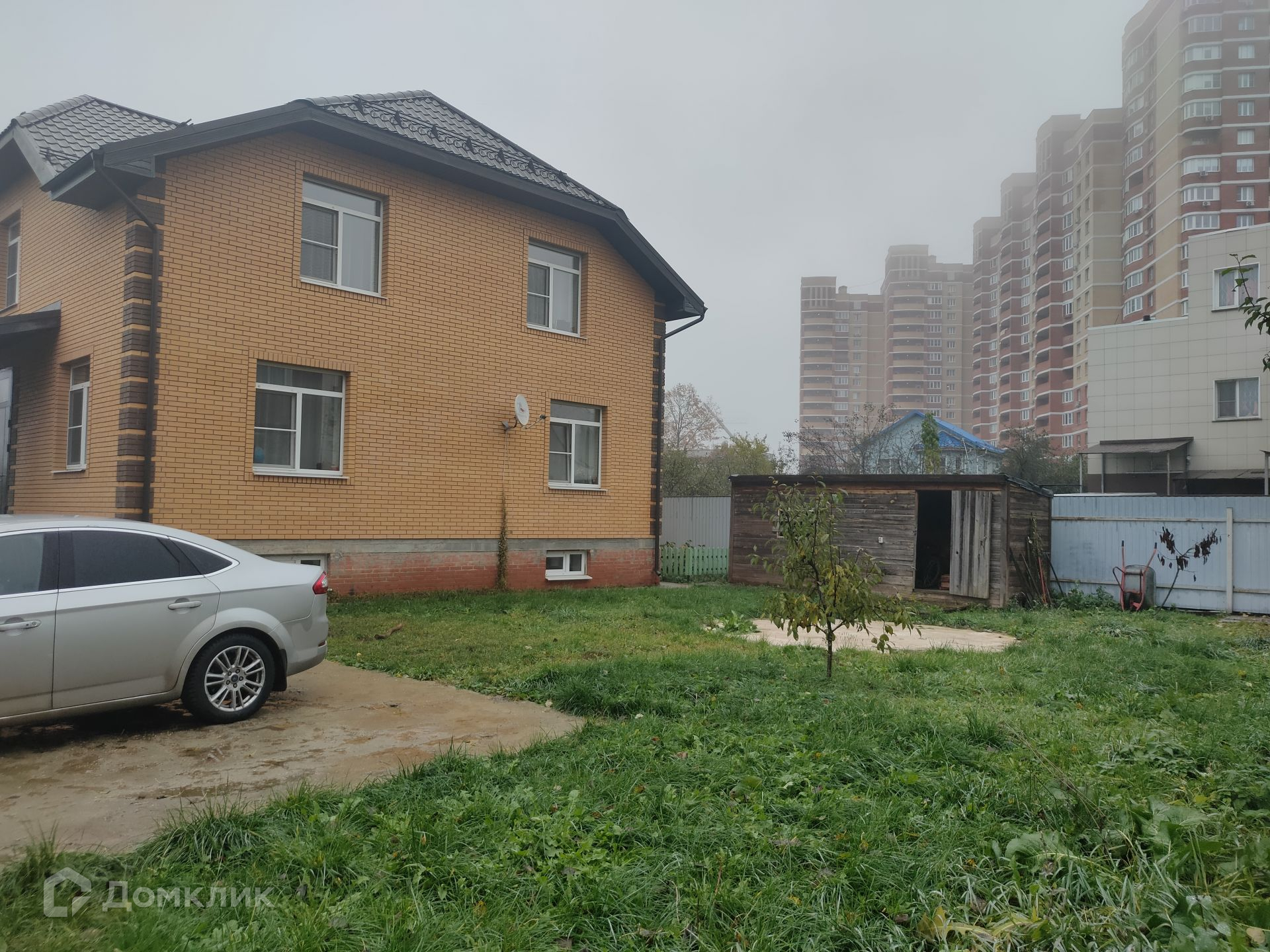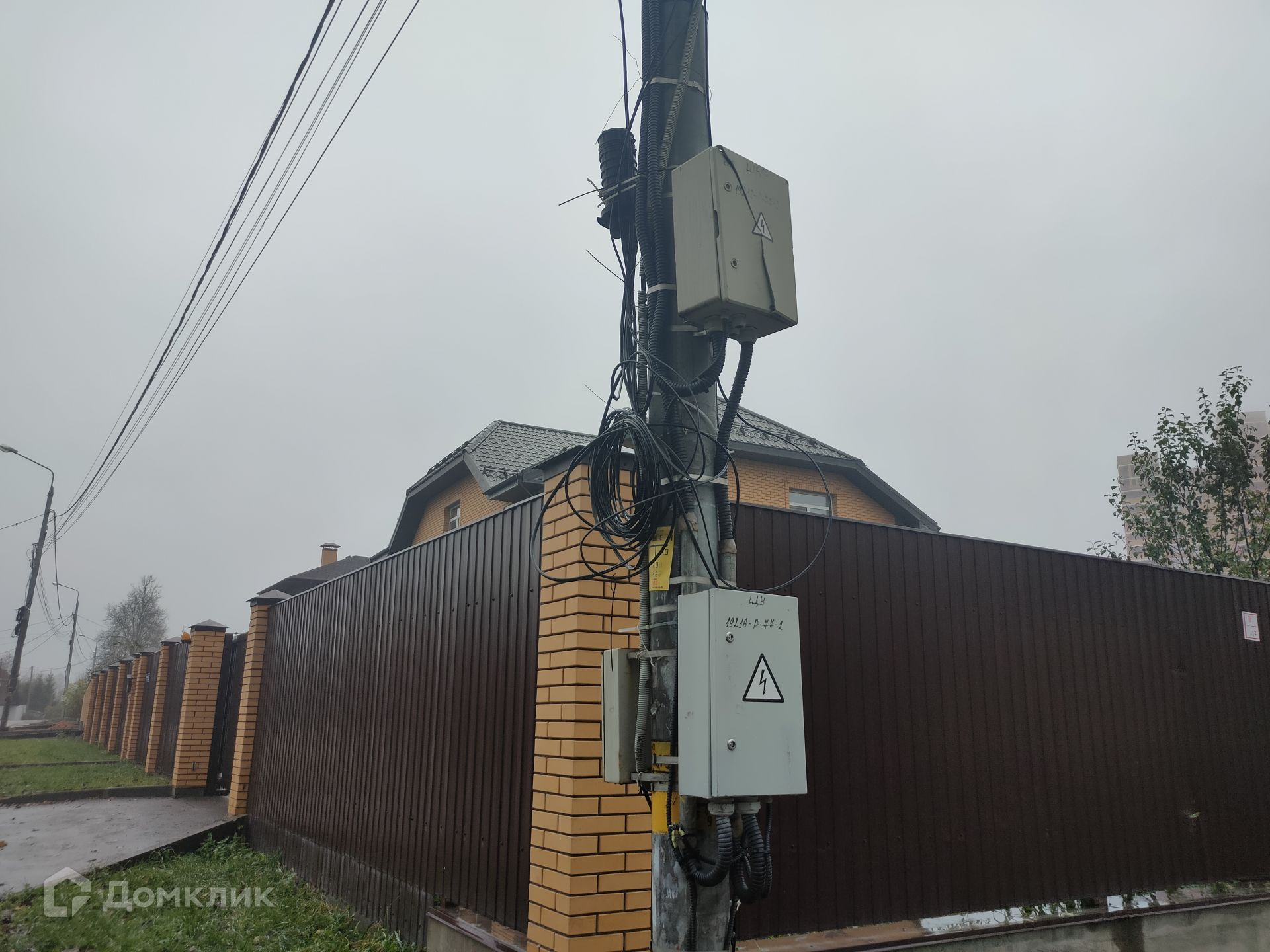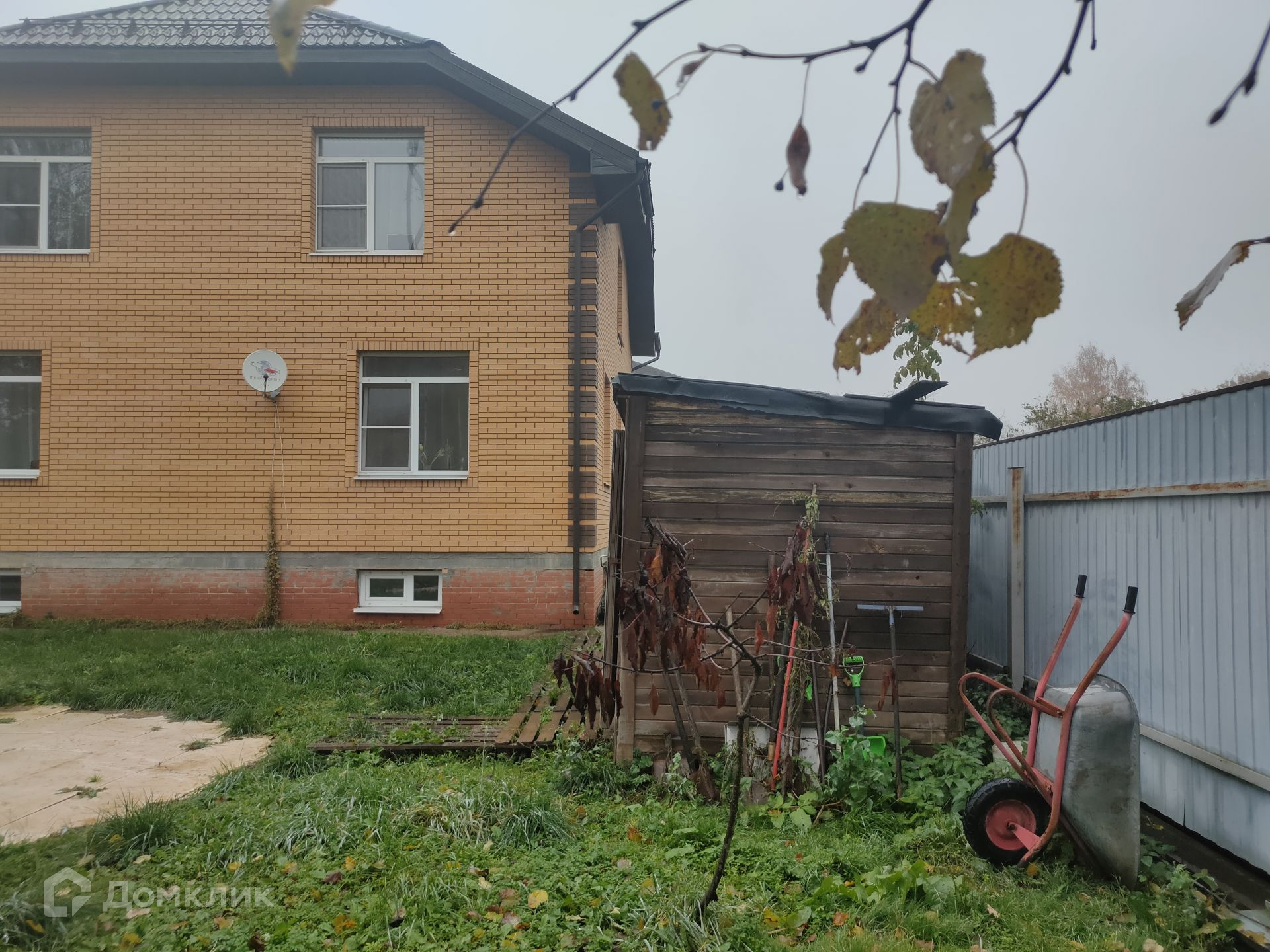 Участок огорожен металлическим штакетником. Сделаны откатные автоматические ворота и предусмотрено парковочное место. На территории есть хозяйственный блок. Растут плодоносящие деревья и кустарники.