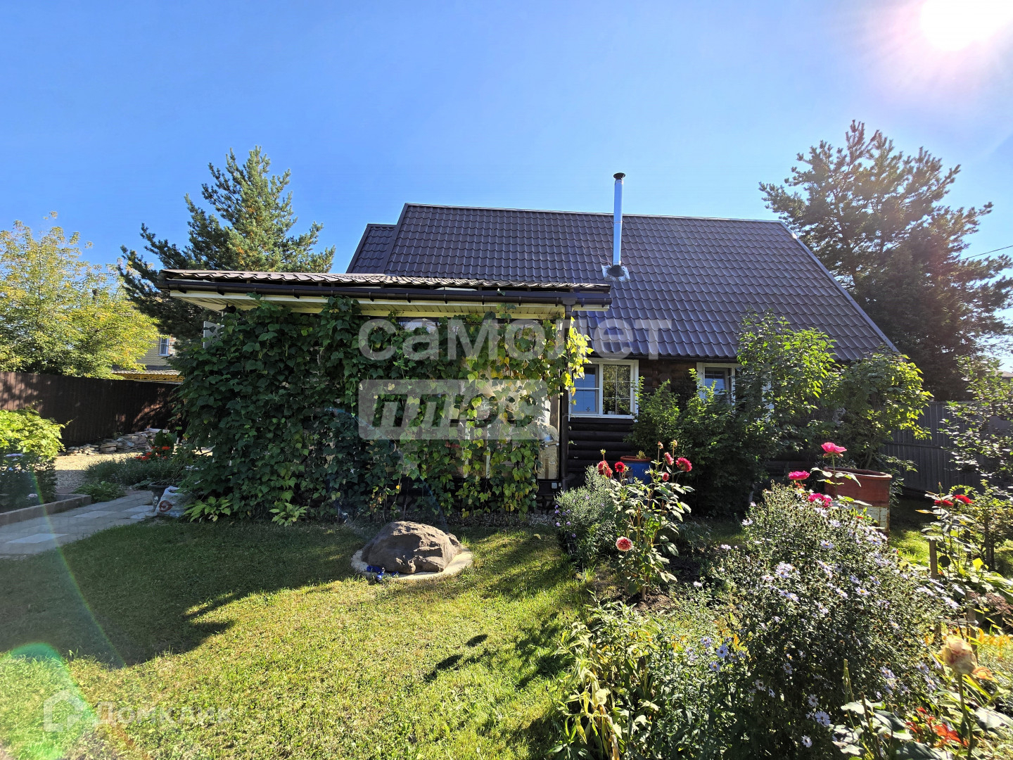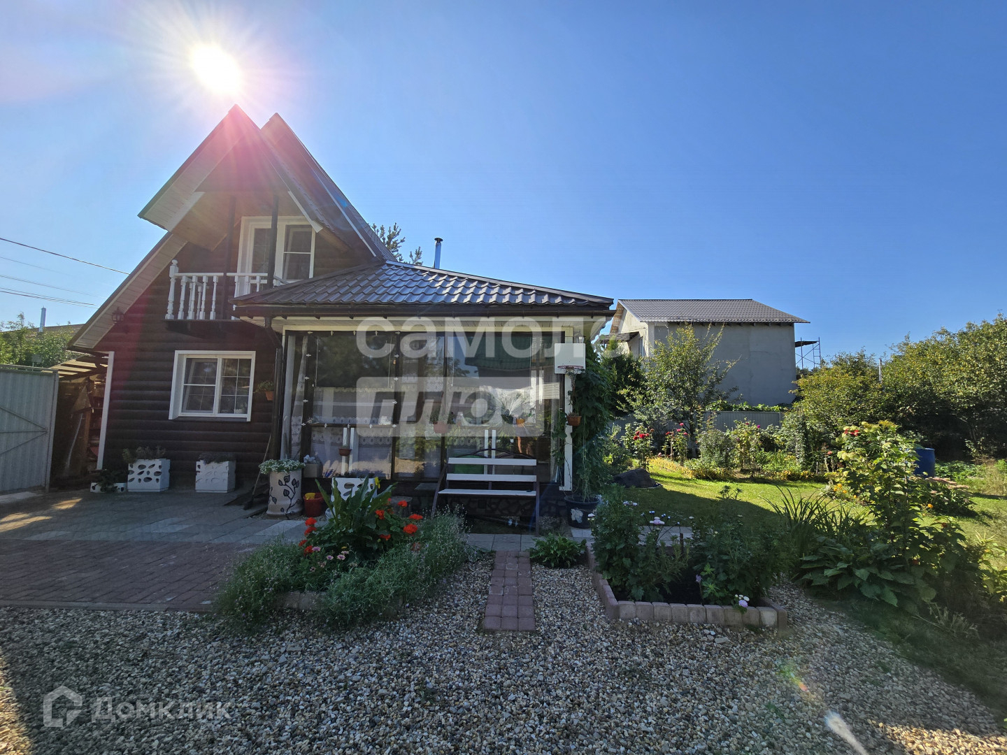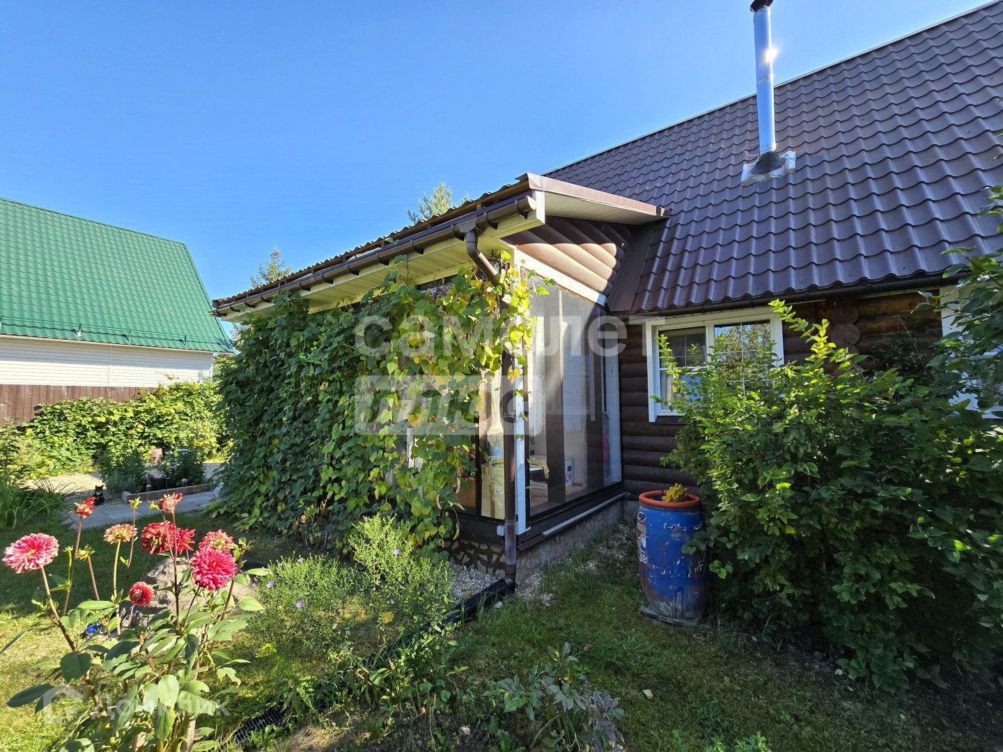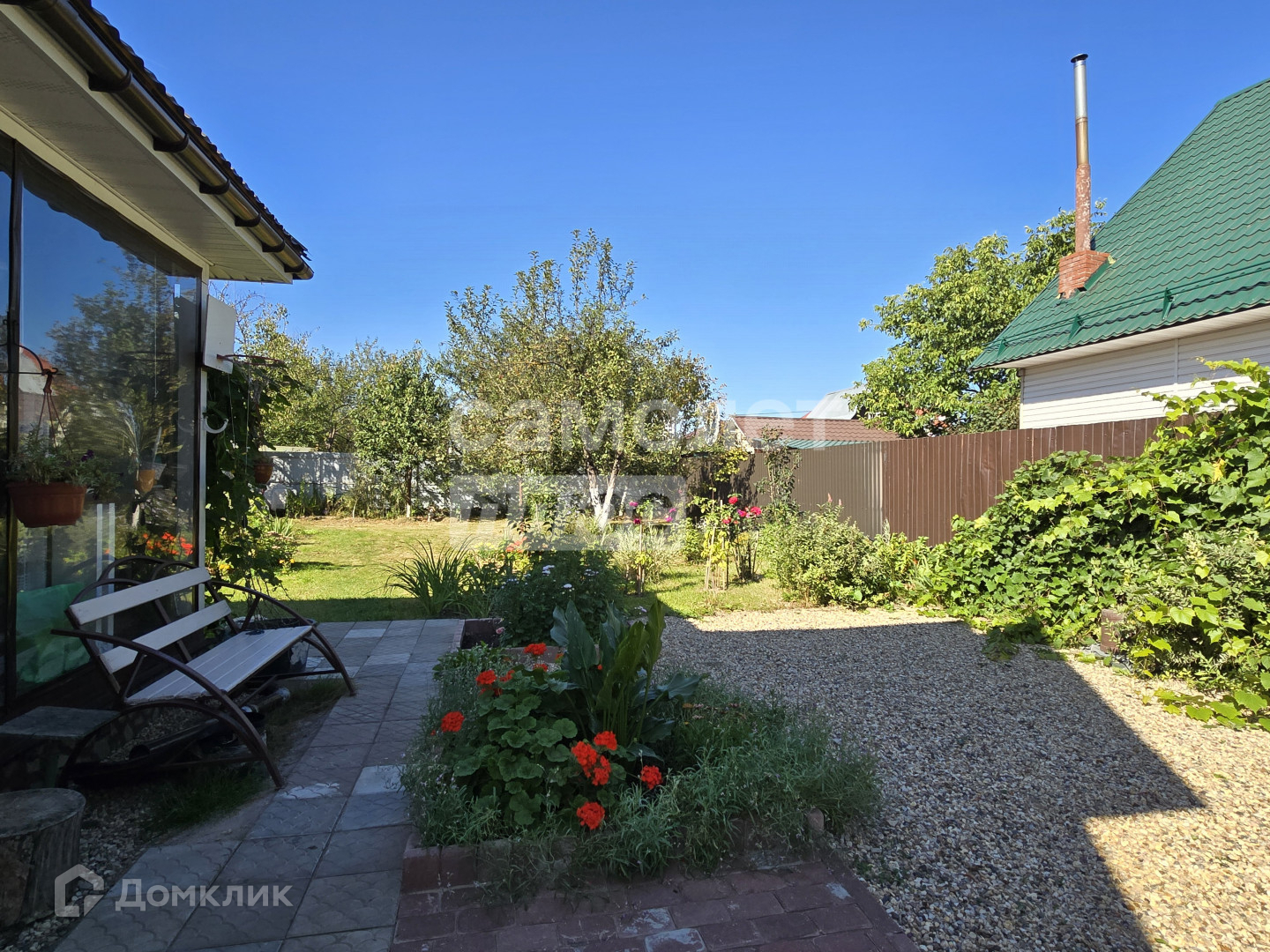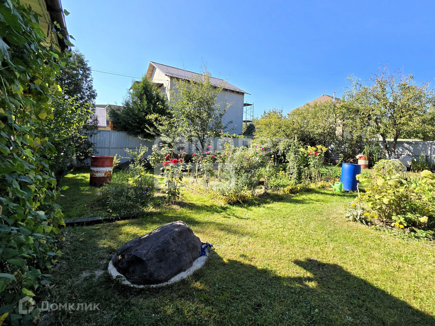 Участок ухожен с большой любовью, на нем расположены: площадка под стоянку авто, теплицы, плодоносящие деревья, ягодные кусты, множество цветочных клумб и тд.