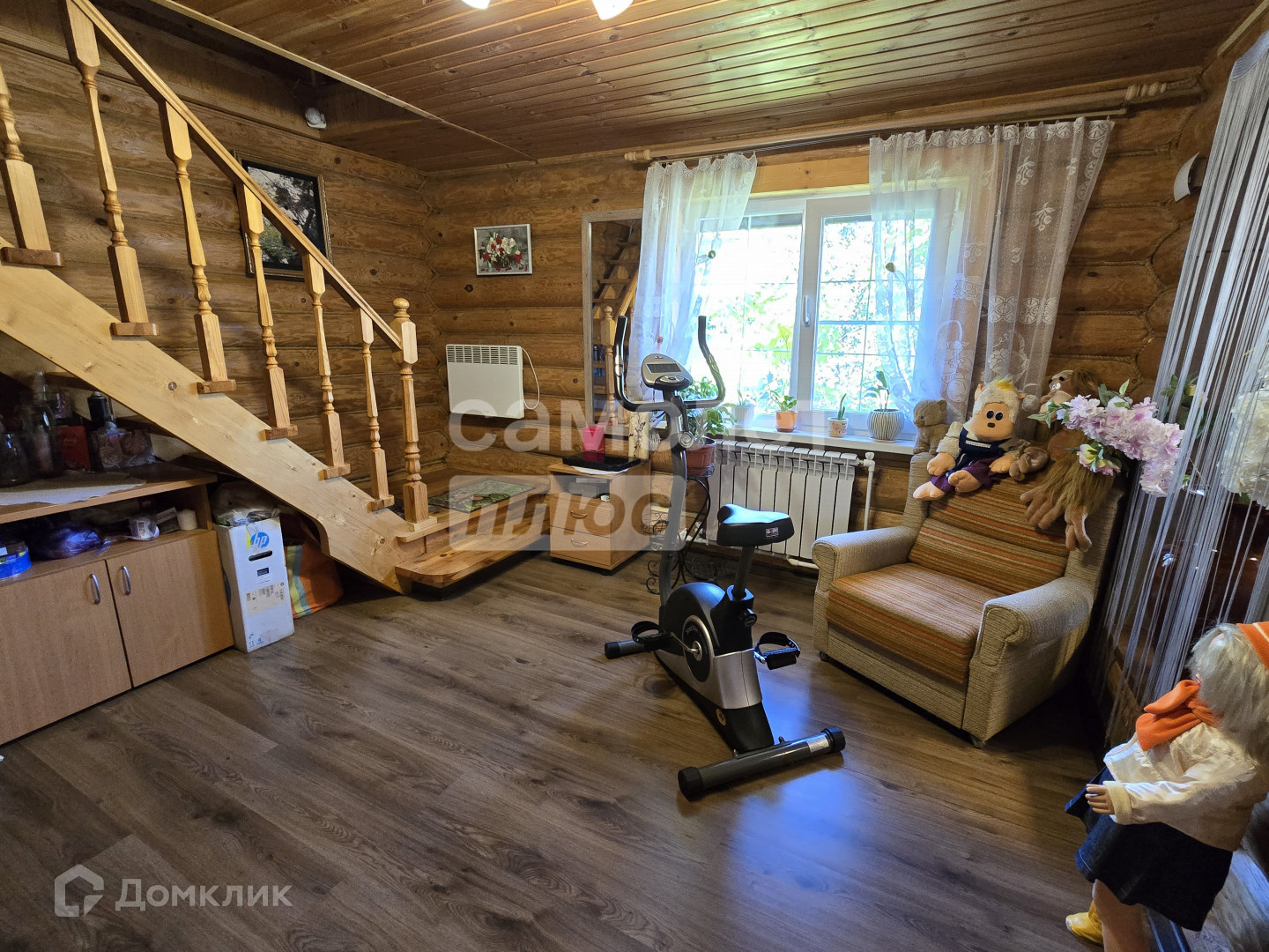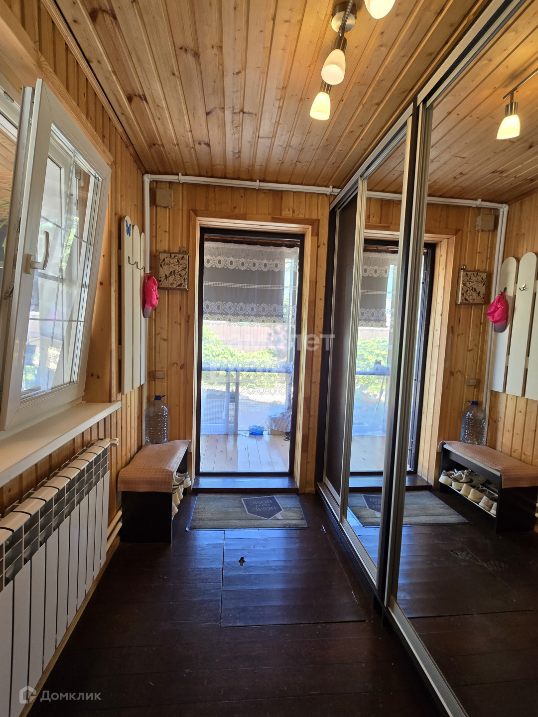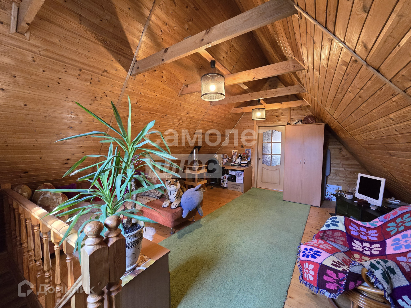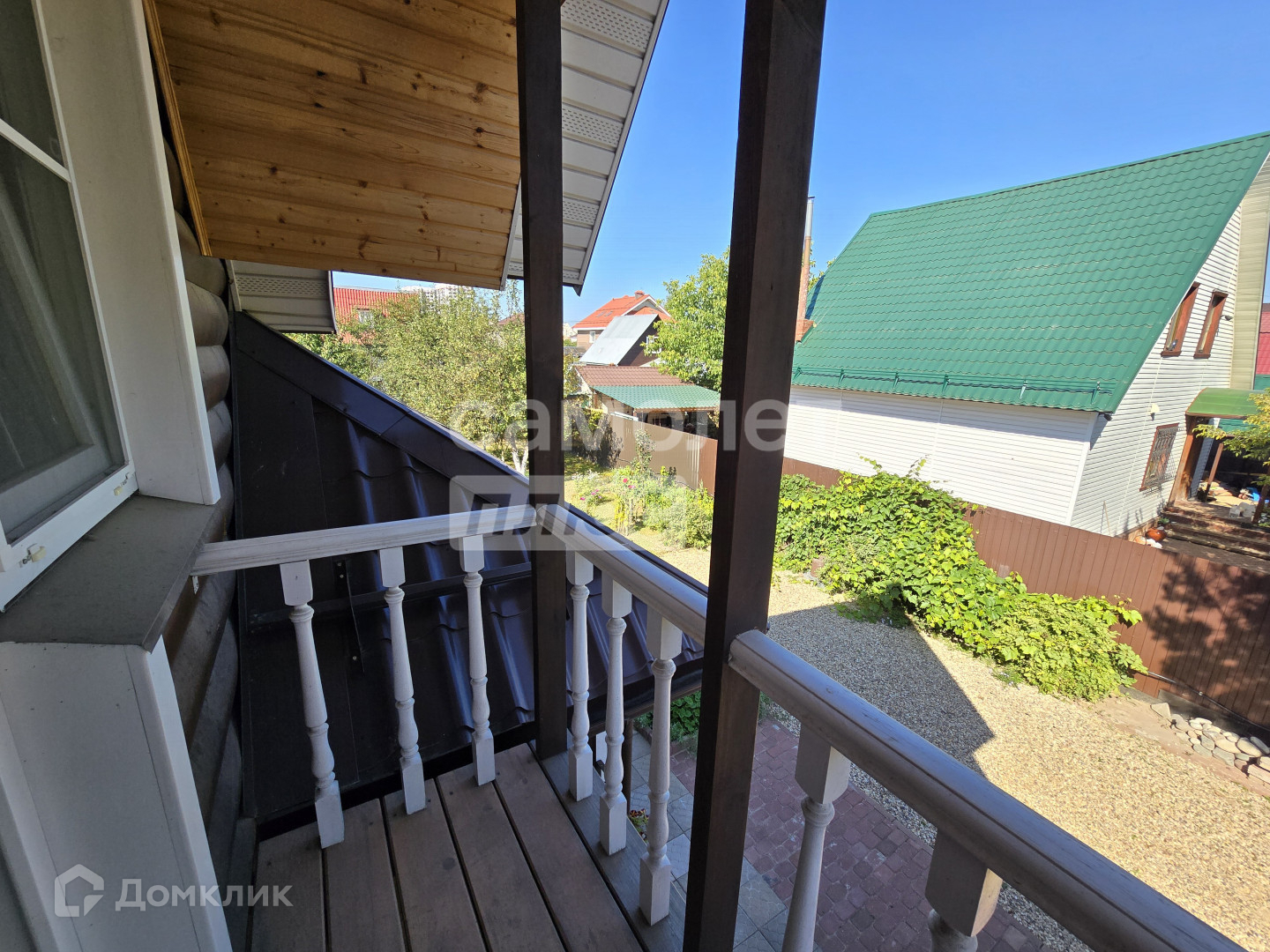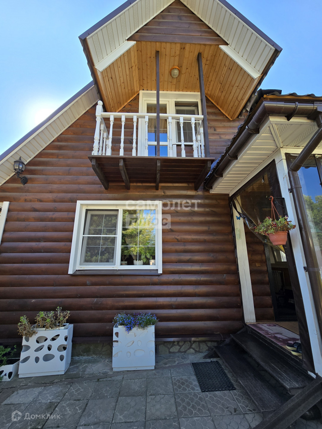 Дом 2 этажа площадью 100,4 кв.м. с балконом и летней верандой из оцилиндрованного бруса. Стоит на столбчатом и заглубленном ленточном фундаменте. Крыша металлочерепица. Во всем доме новые двойные стеклопакеты Рехау. Имеется небольшой погреб. Зимой дом отапливается от