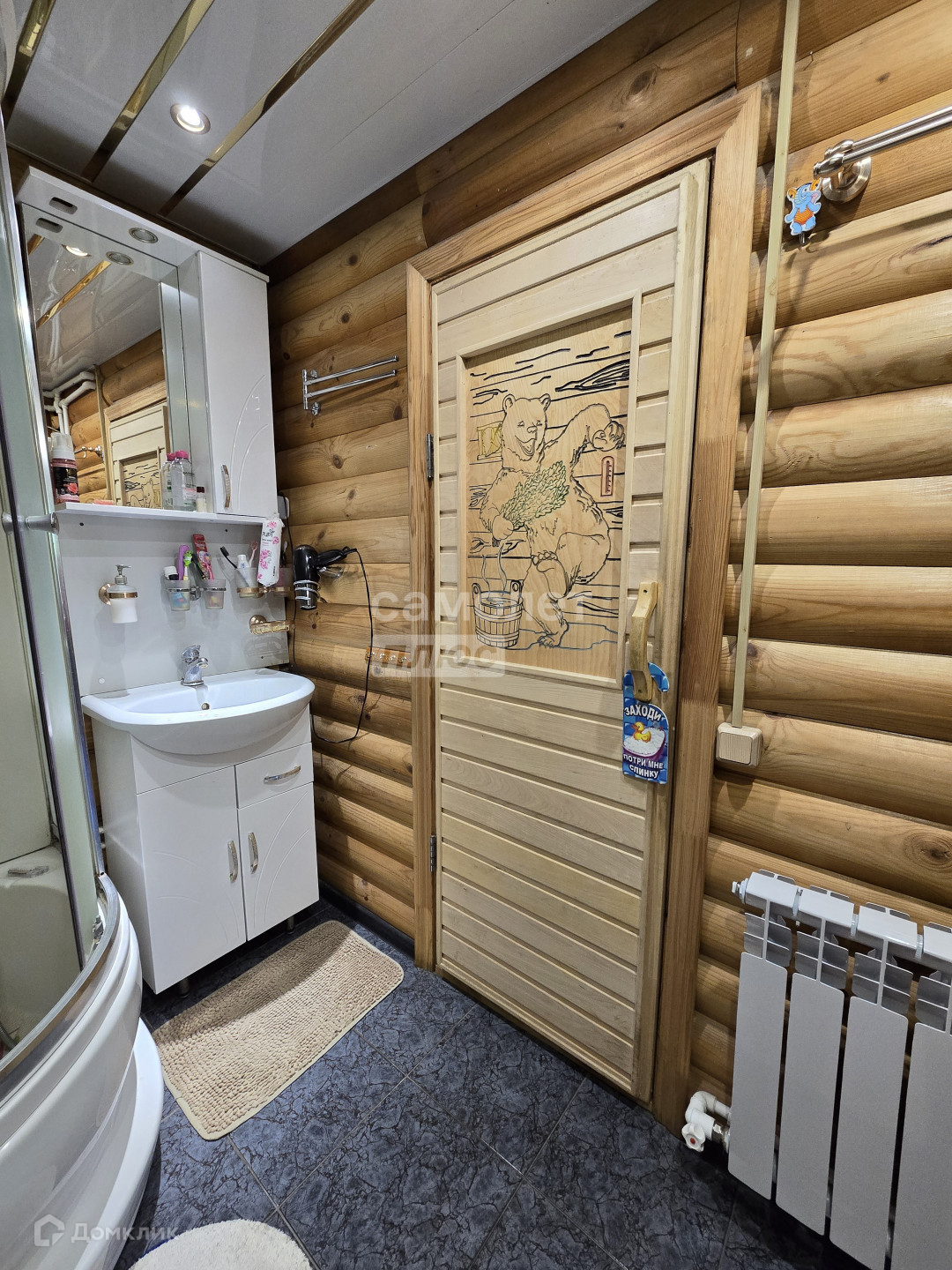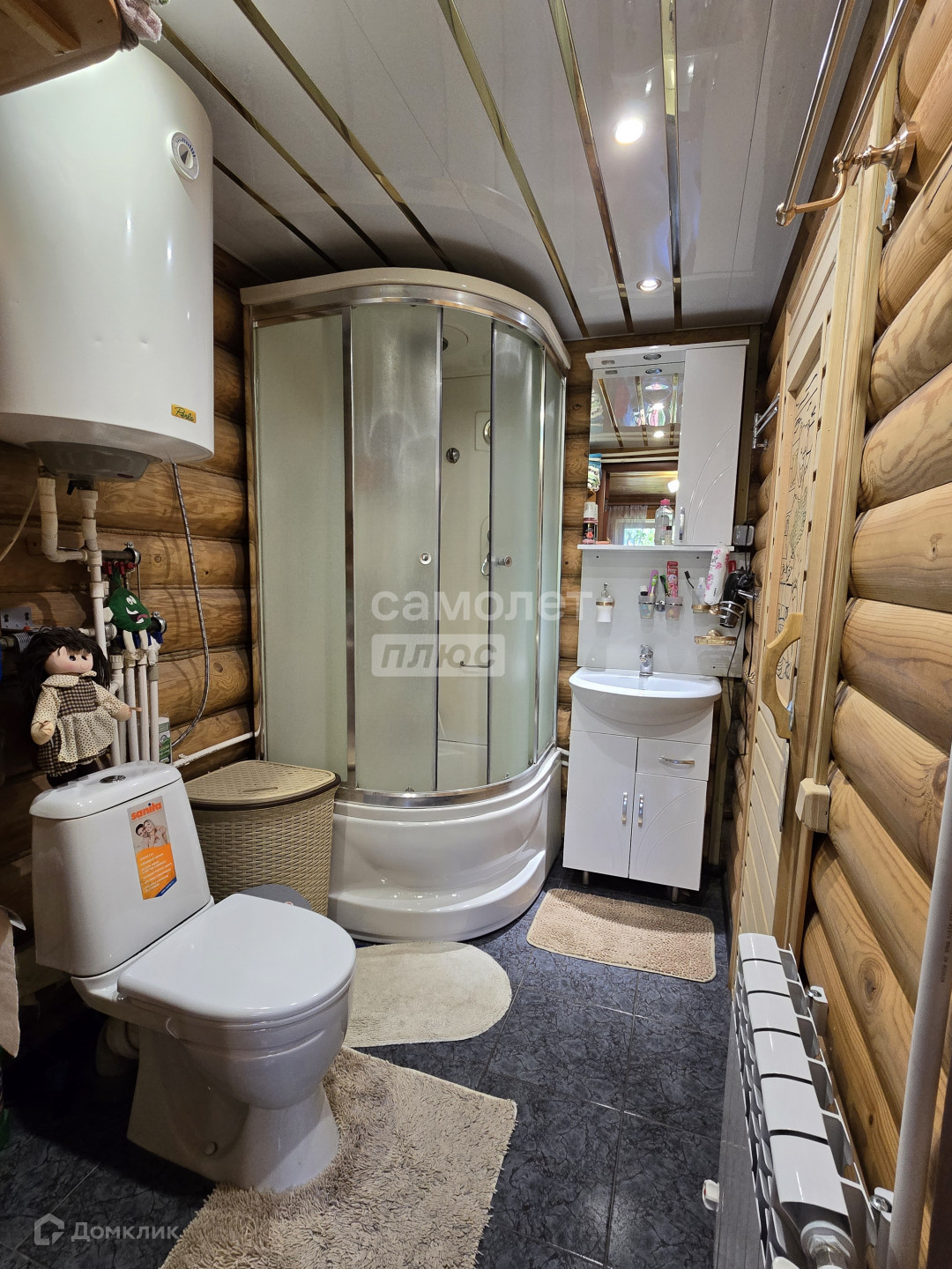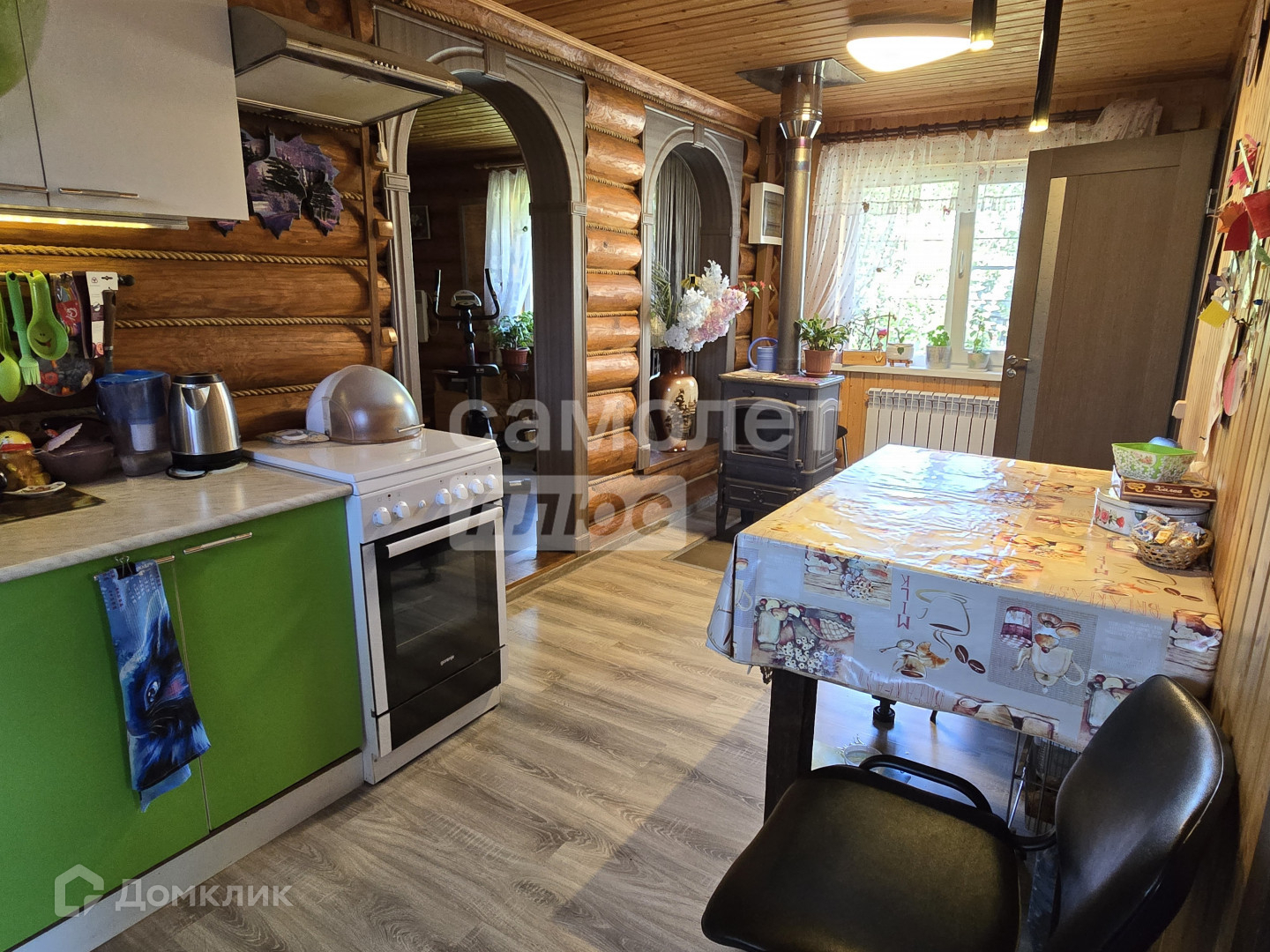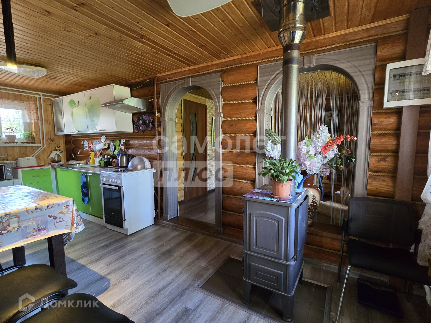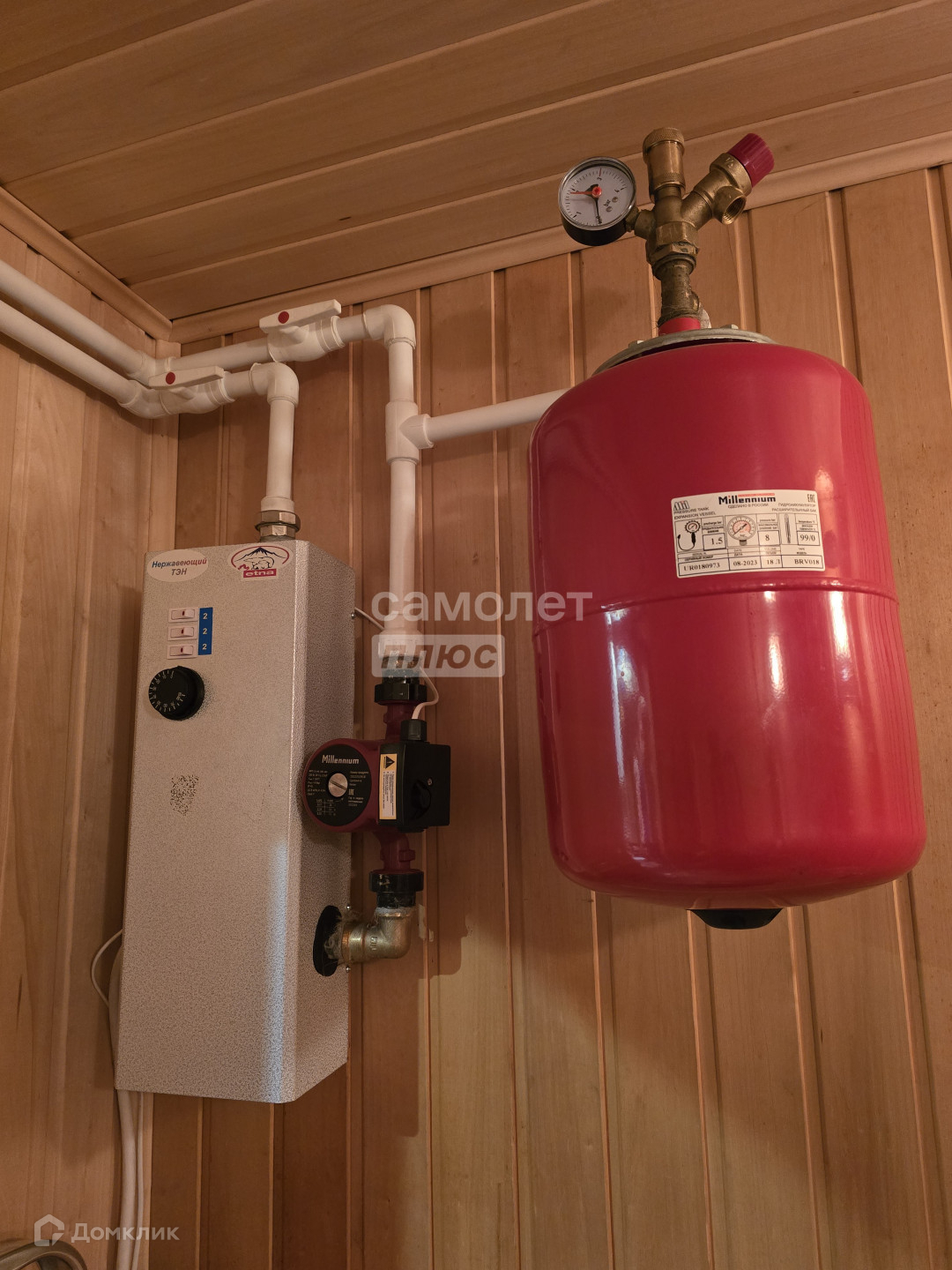 электрического котла, разводка радиаторов по комнатам первого этажа. На первом этаже есть сауна. Также есть замечательная печь на дровах, дом прогревает за 2 часа.