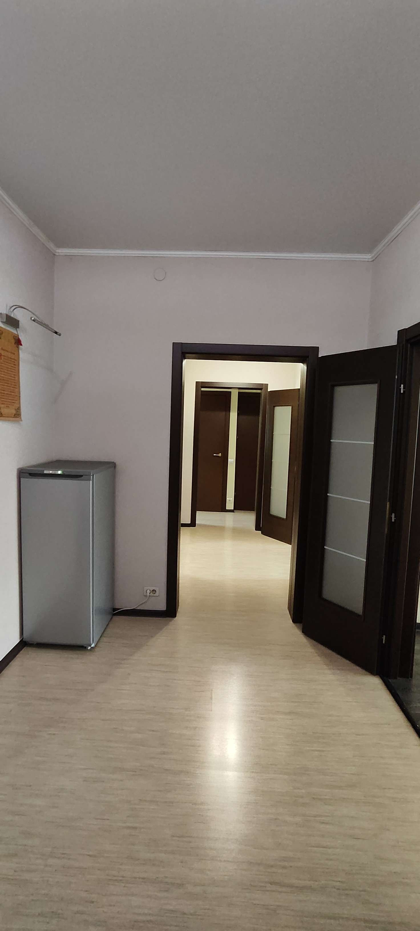 В коридоре огромный встроенный шкаф-купе с зеркалом, куда входит всё, и даже больше...