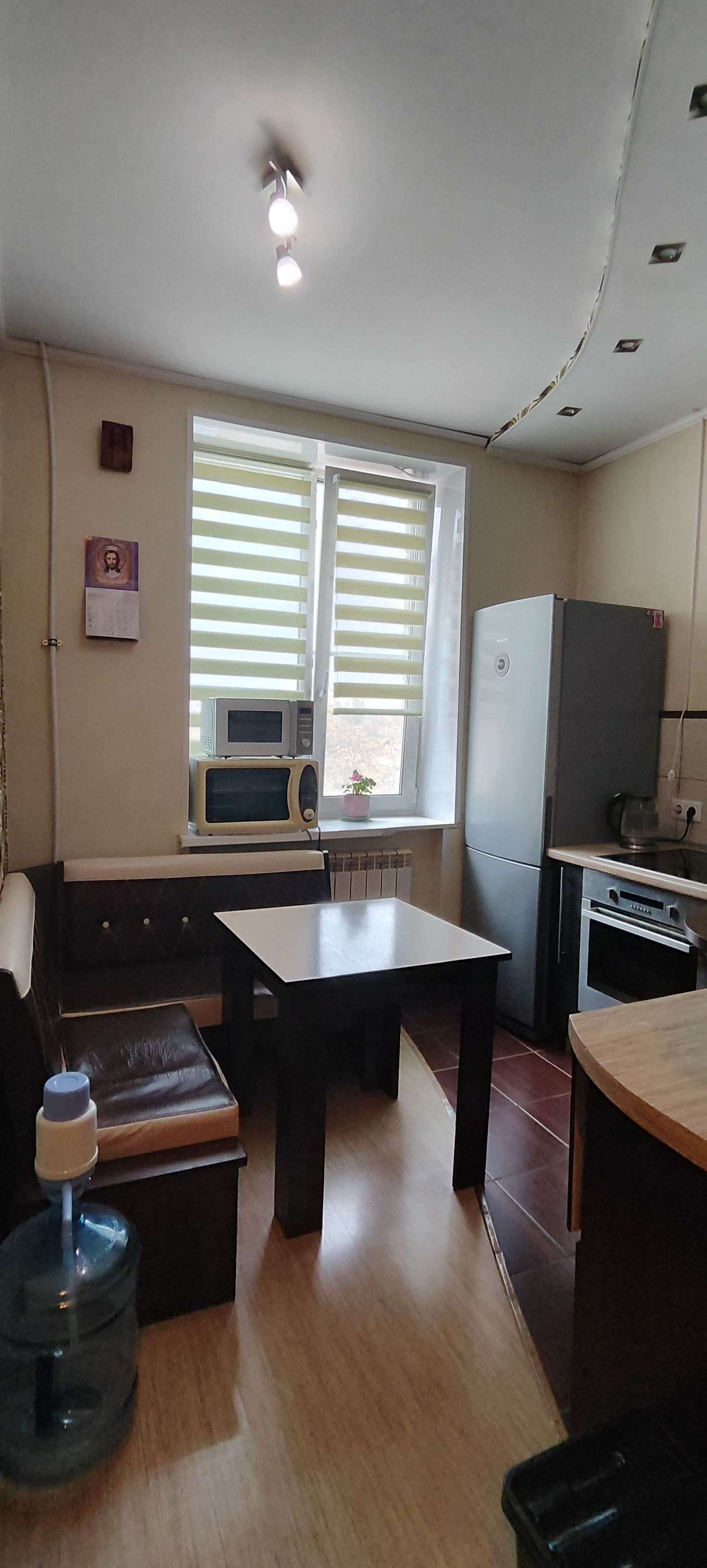 На кухне встроенная электроплита и духовой шкаф, фирма KRONA, остаются вместе с кухонным гарнитуром.