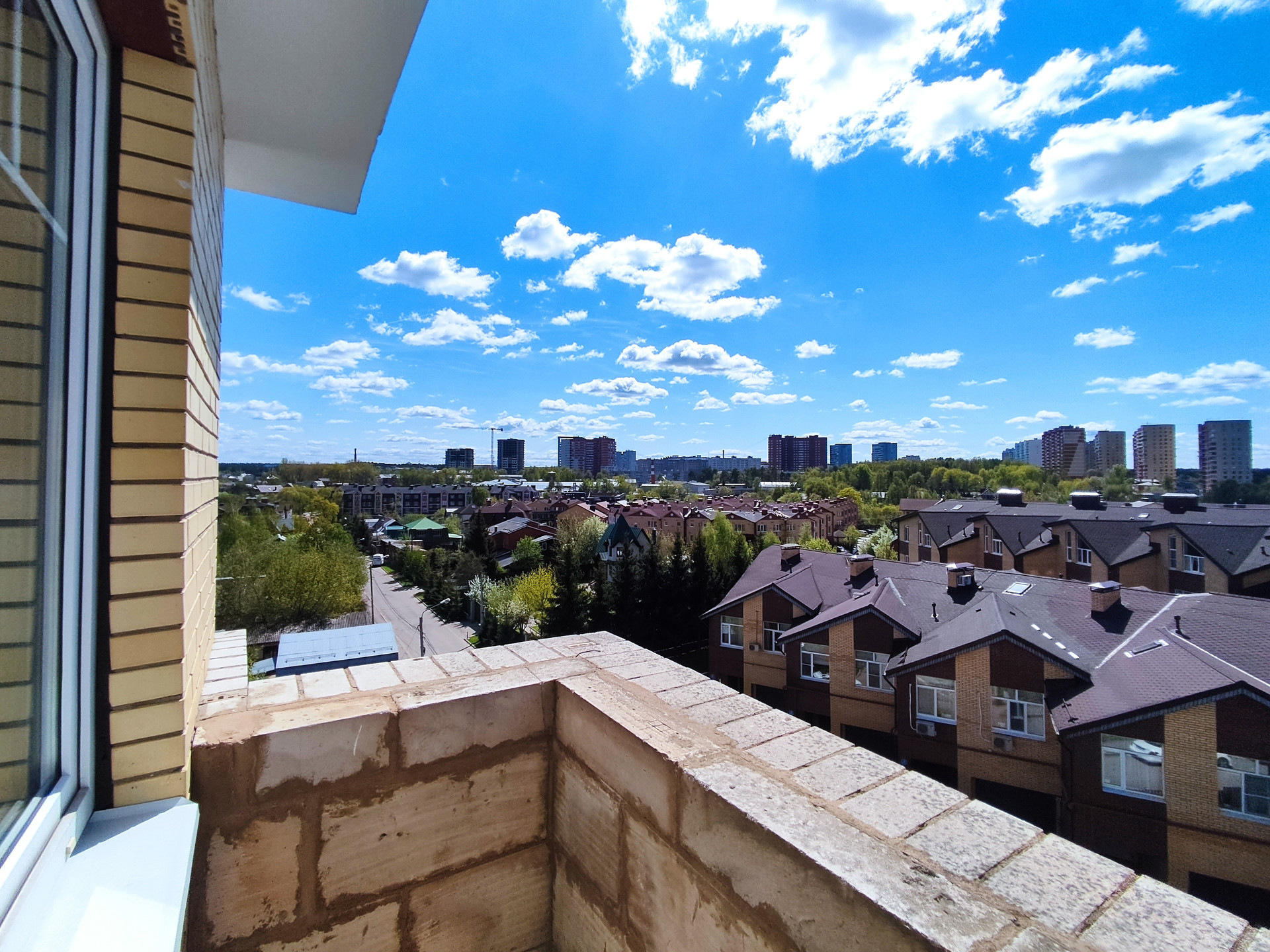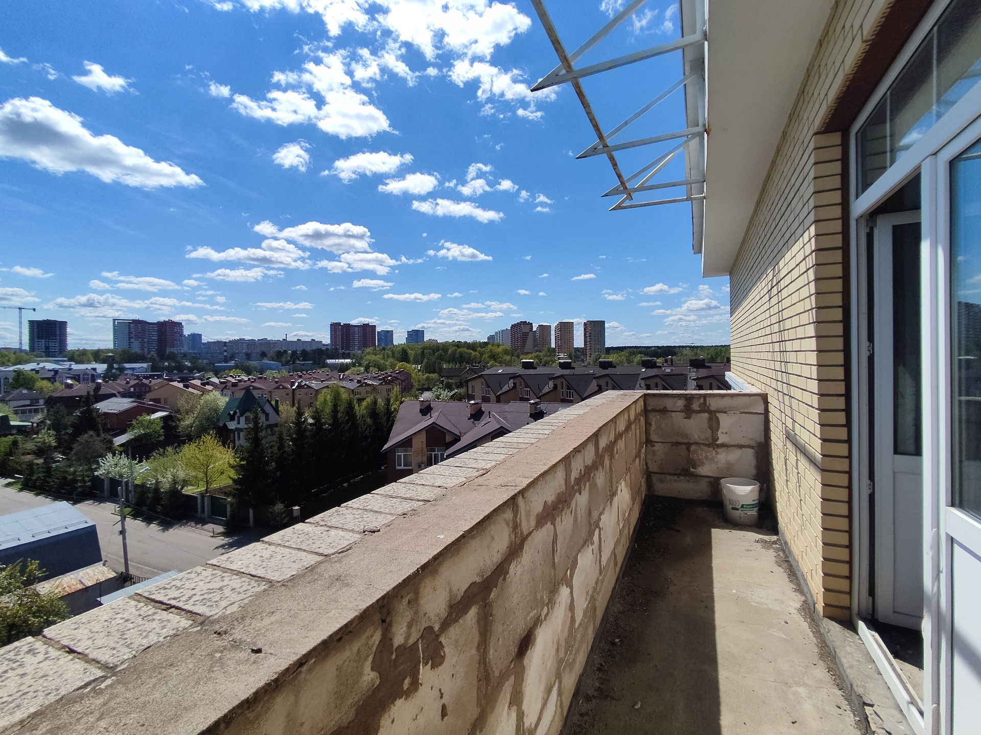 С потрясающими видами из окон на город, с высокими потолками, двумя балконами и огромной террасой!