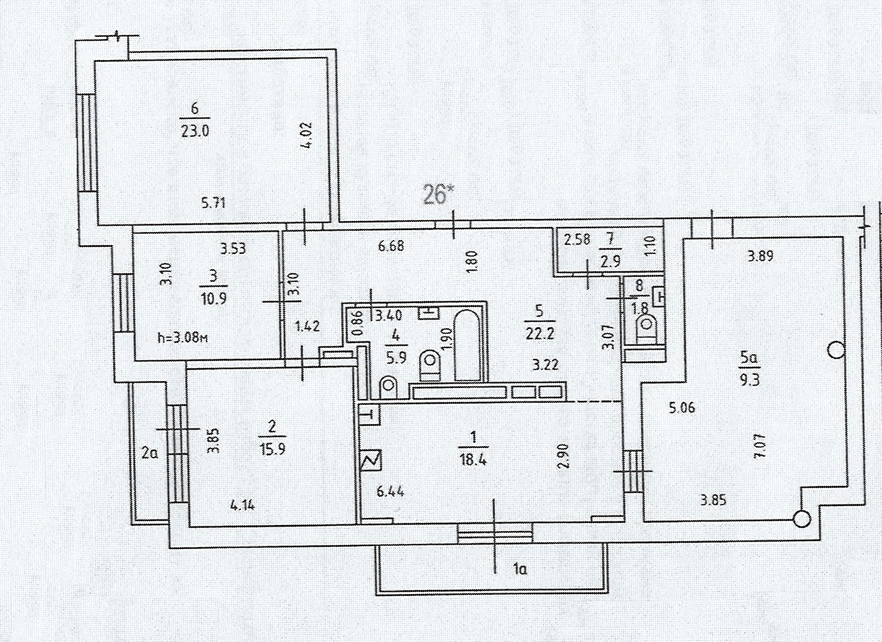 Комнаты изолированные: 23 м2, 15,9 м2, 10,9 м2.