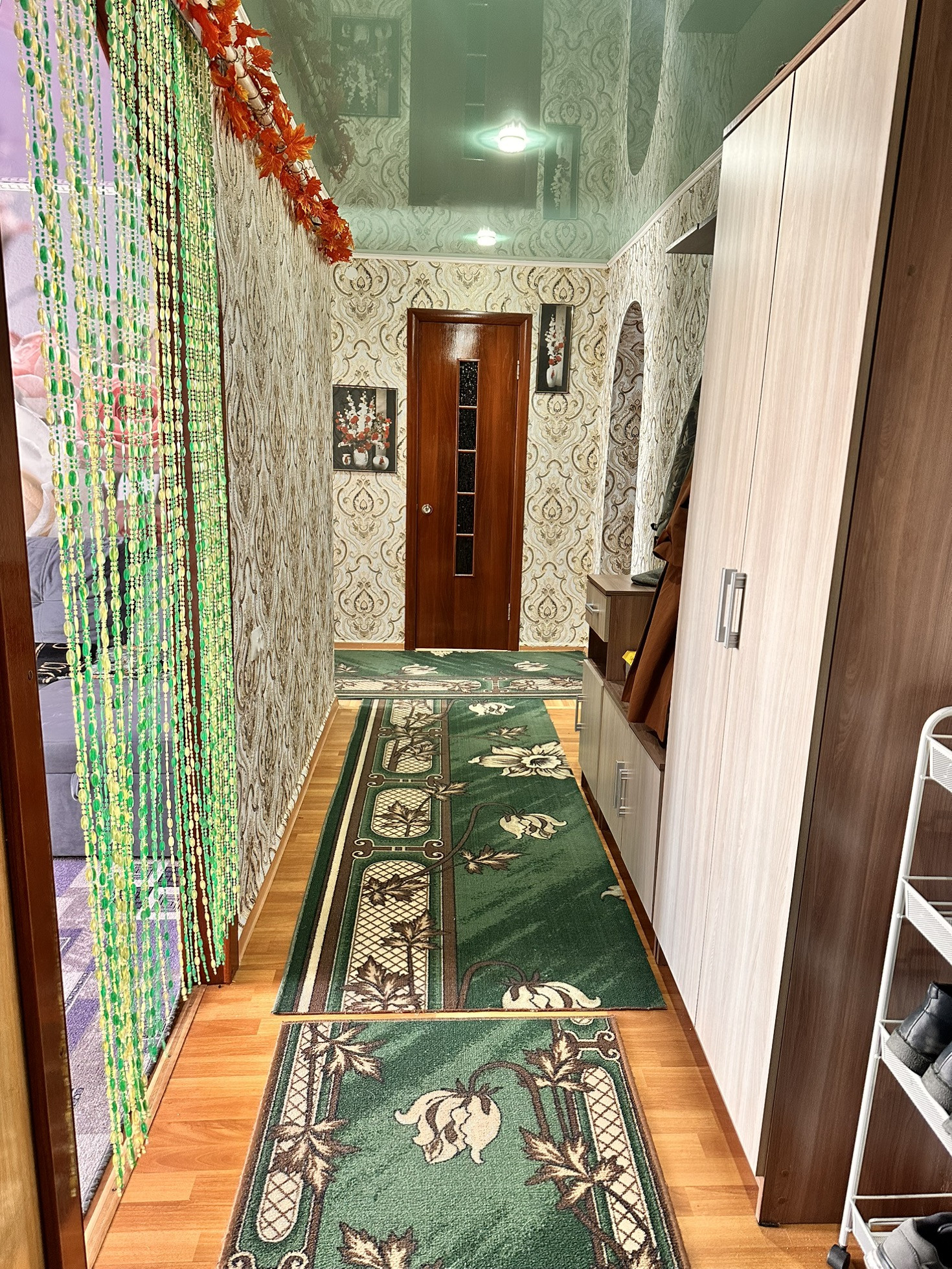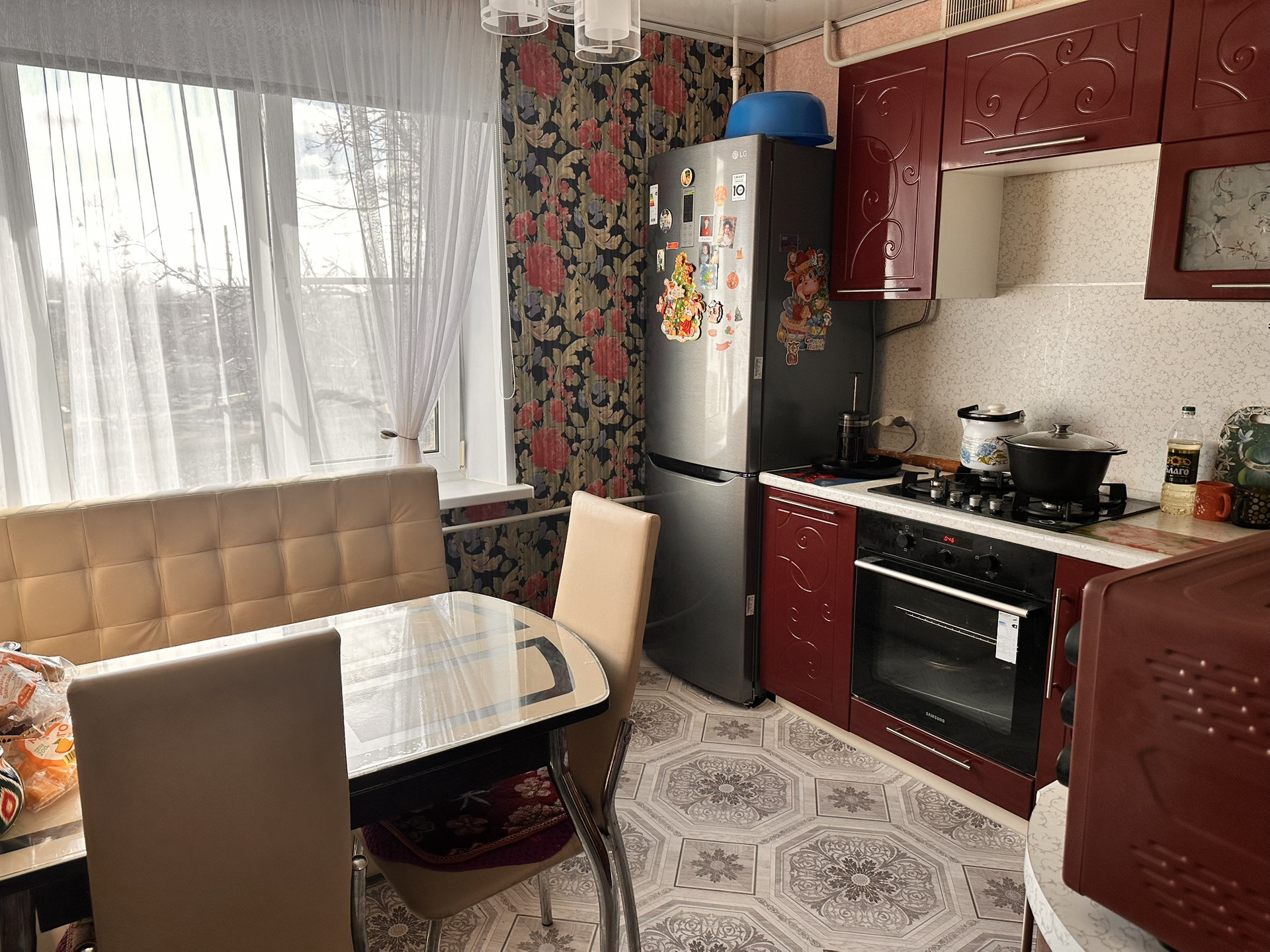 Комнаты все разделены, кухня 9 КВ.м, в квартире частично остаётся мебель.