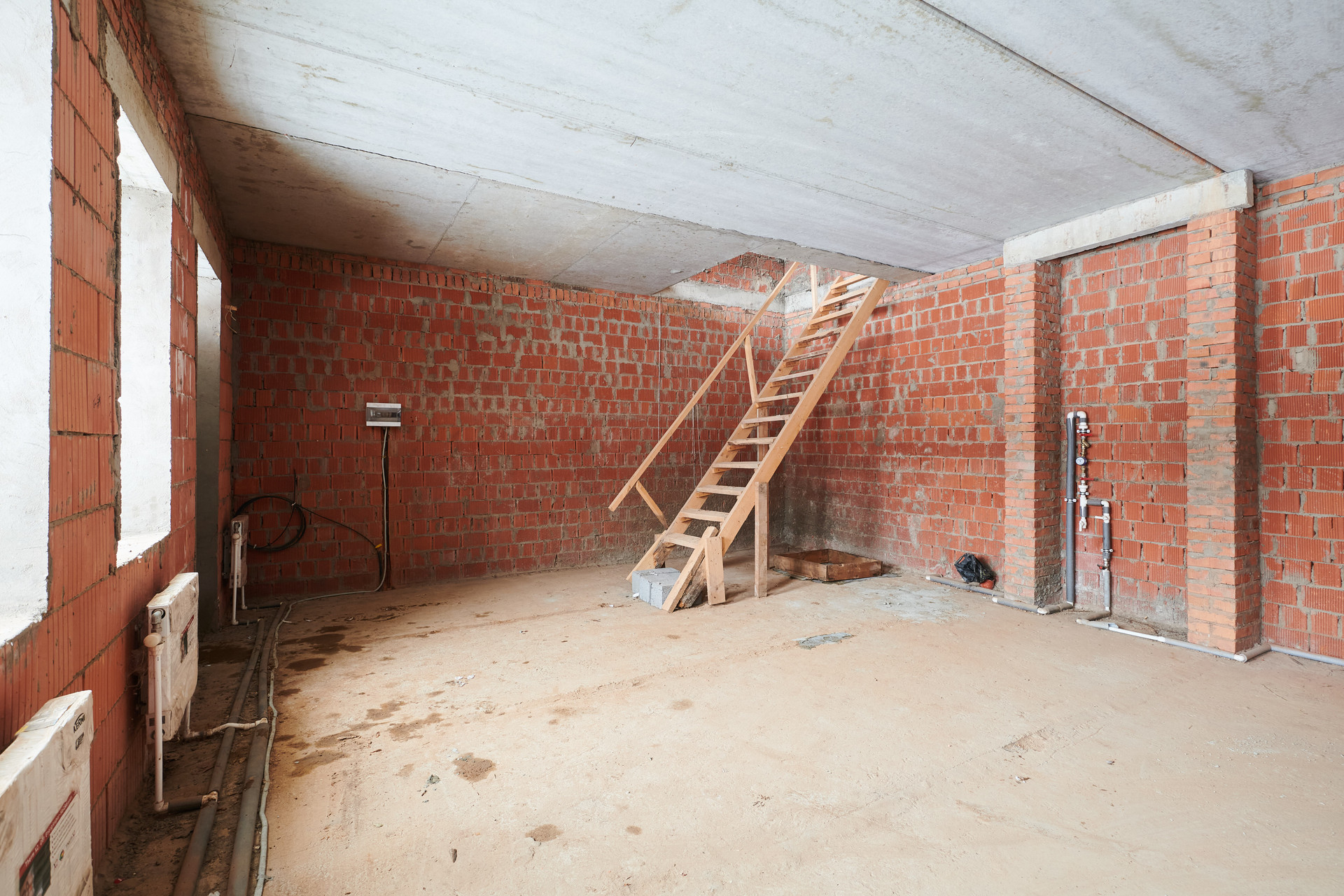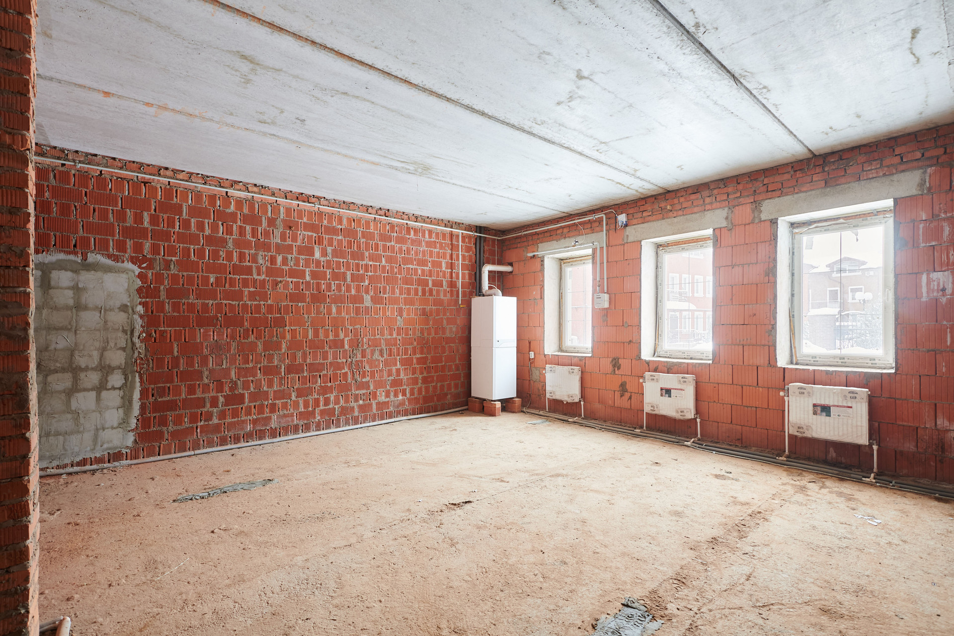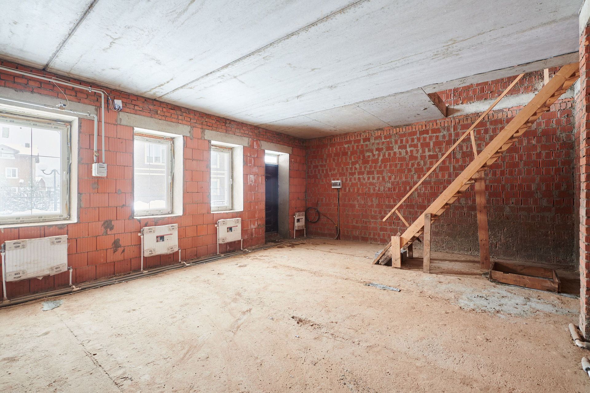 Свободная планировка, без отделки, на втором этаже небольшой балкон, третий этаж - мансарда.