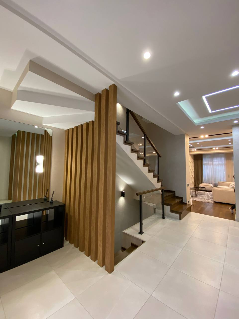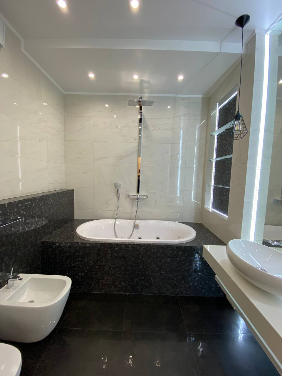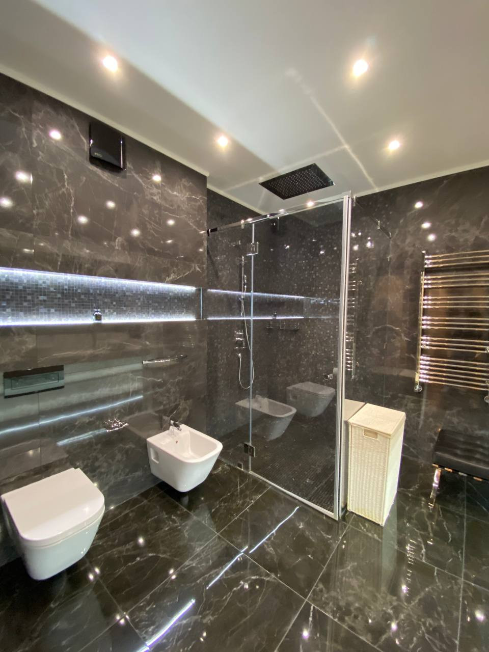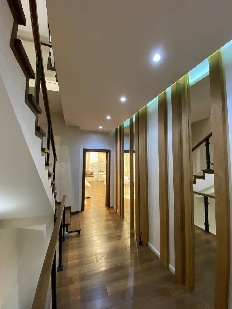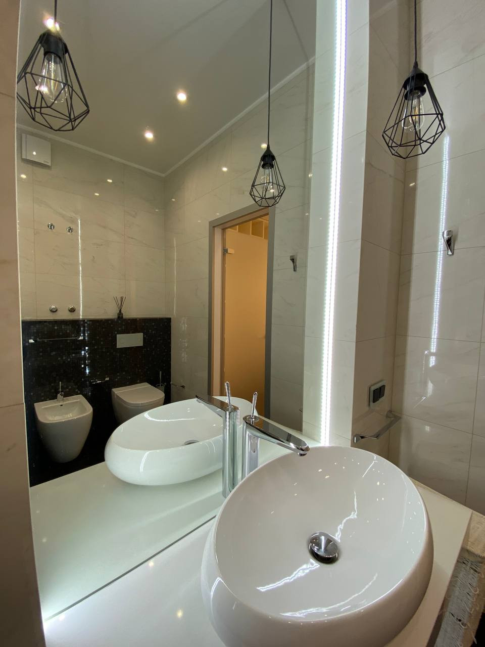 Интерьер выполнен по дизайн-проекту, в отделке и оснащении использованы высококачественные, современные итальянские, немецкие материалы и современное оборудование. 5 уровней, 4 спальни, 5 с/узлов, гардеробные, подсобные помещения, SPA-зона, хамам. 2 входа/выхода: центральный с парковки, второй из гостиной на прилегающую лужайку.