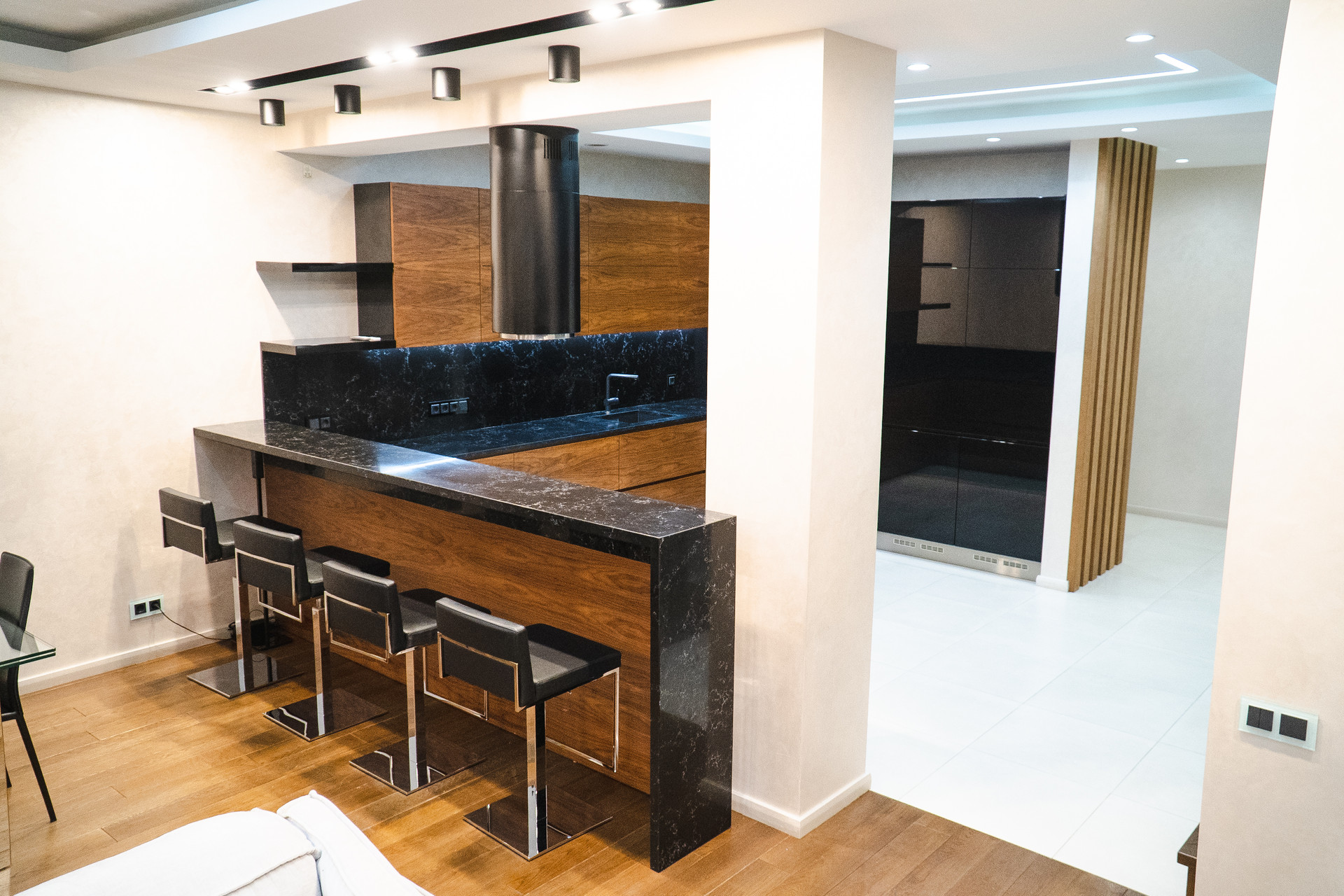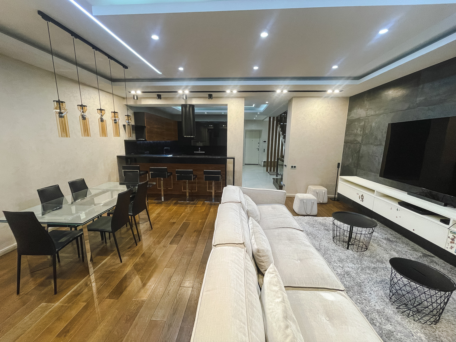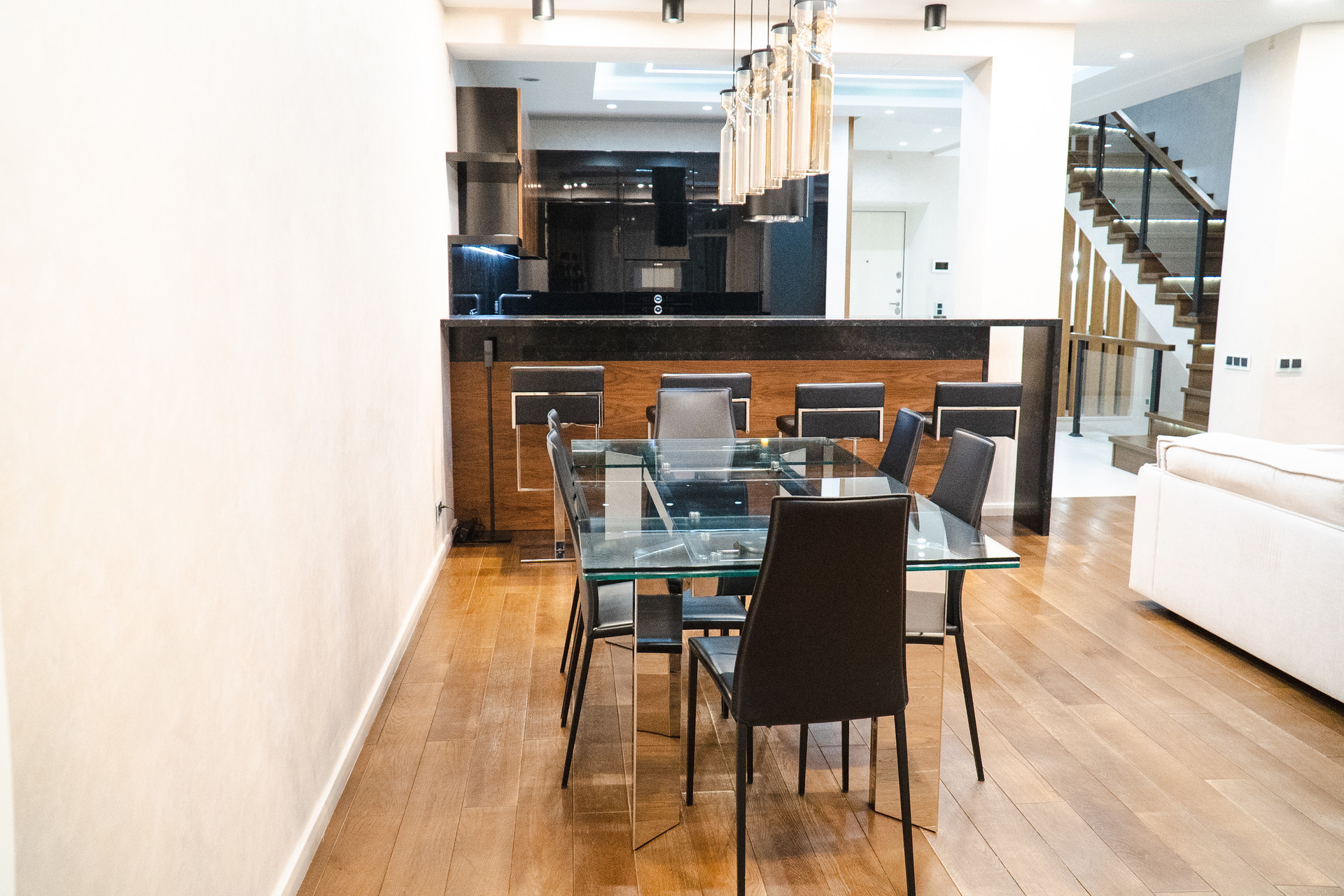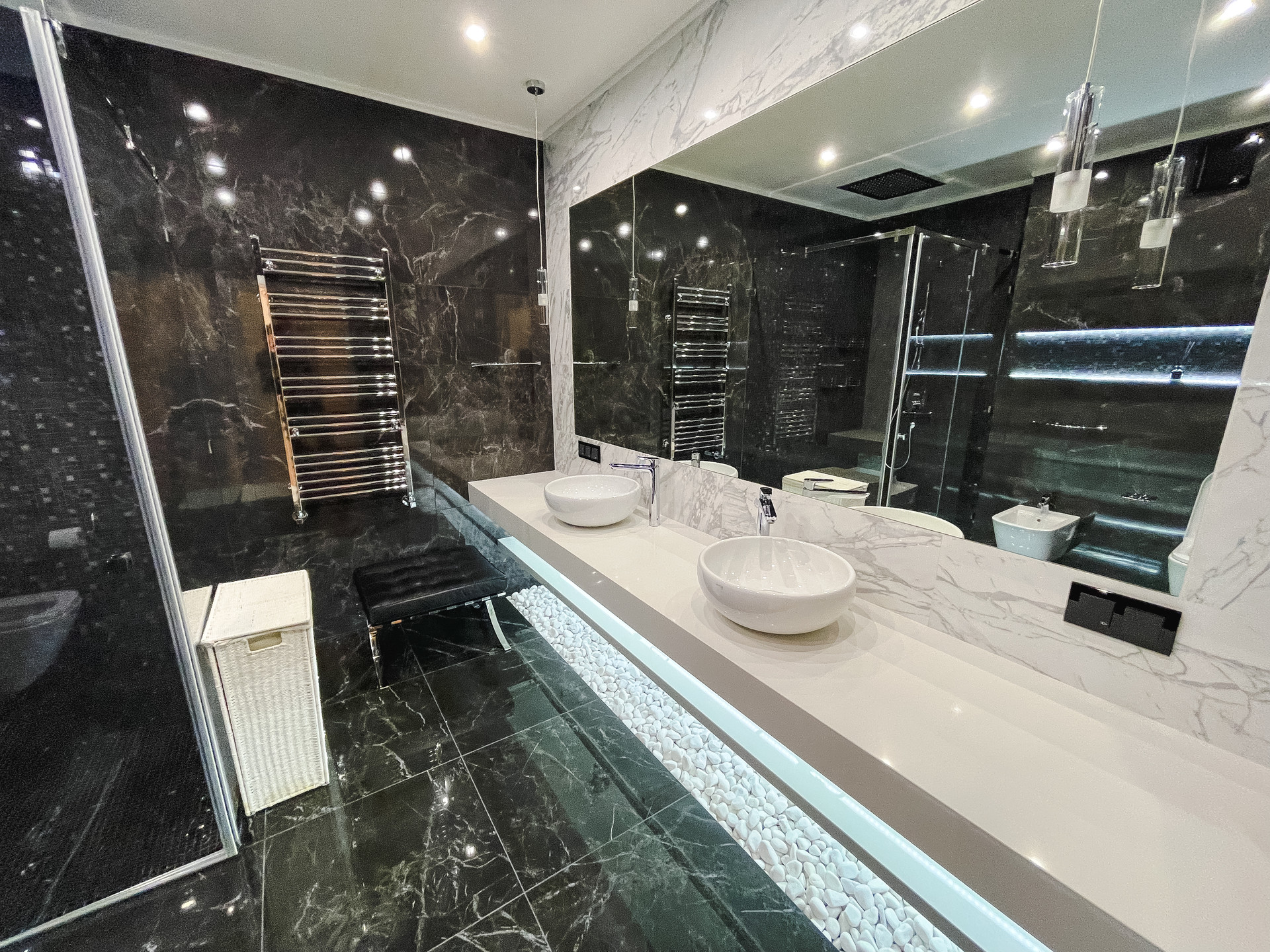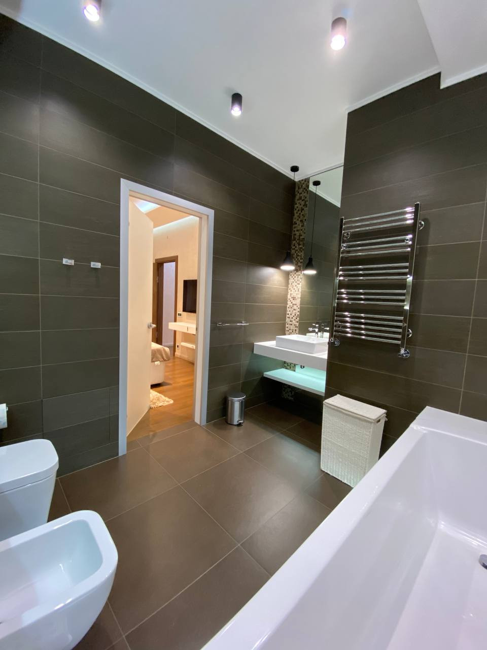 Интерьер выполнен по дизайн-проекту, в отделке и оснащении использованы высококачественные, современные итальянские, немецкие материалы и современное оборудование. 5 уровней, 4 спальни, 5 с/узлов, гардеробные, подсобные помещения, SPA-зона, хамам. 2 входа/выхода: центральный с парковки, второй из гостиной на прилегающую лужайку.