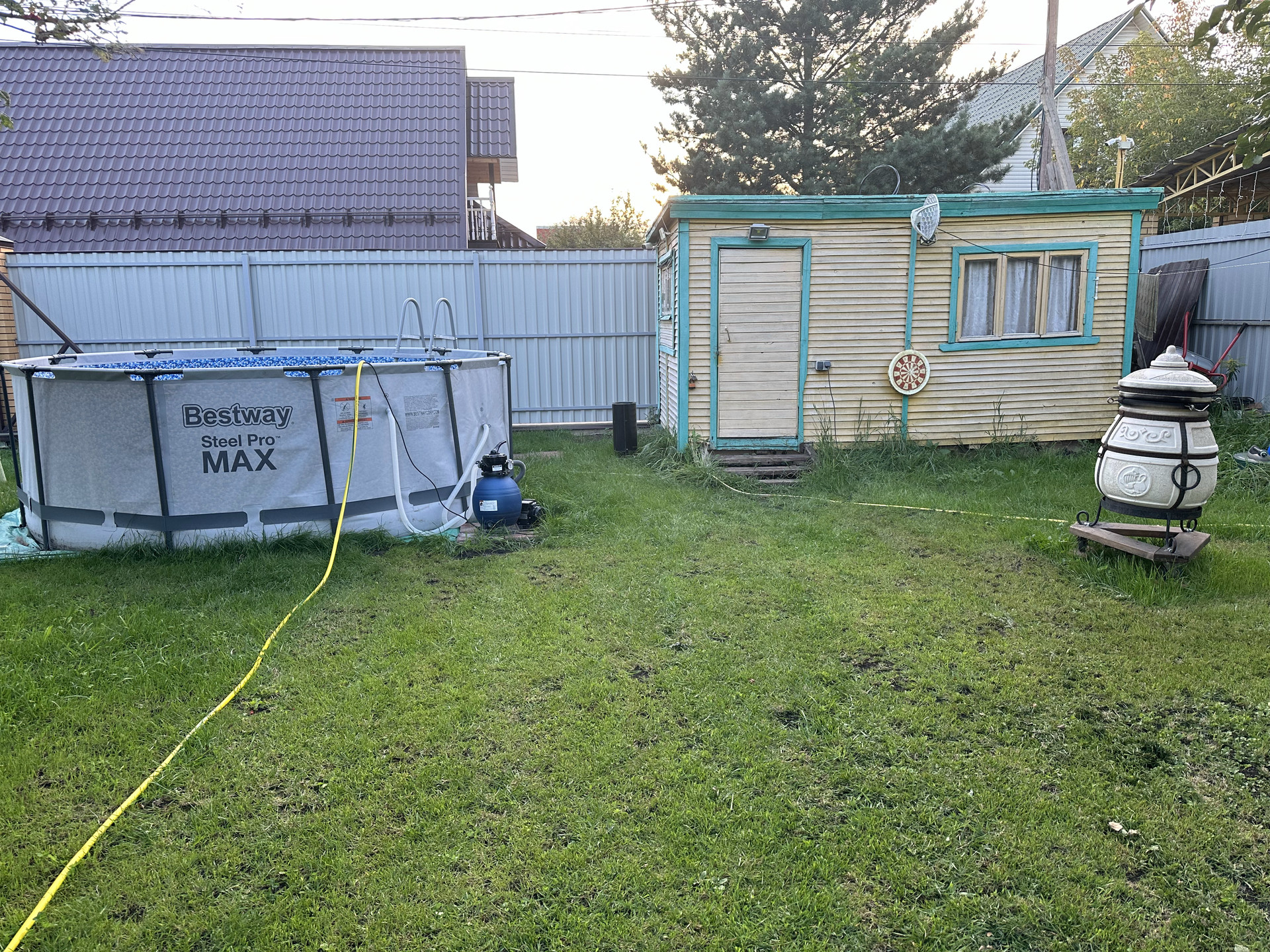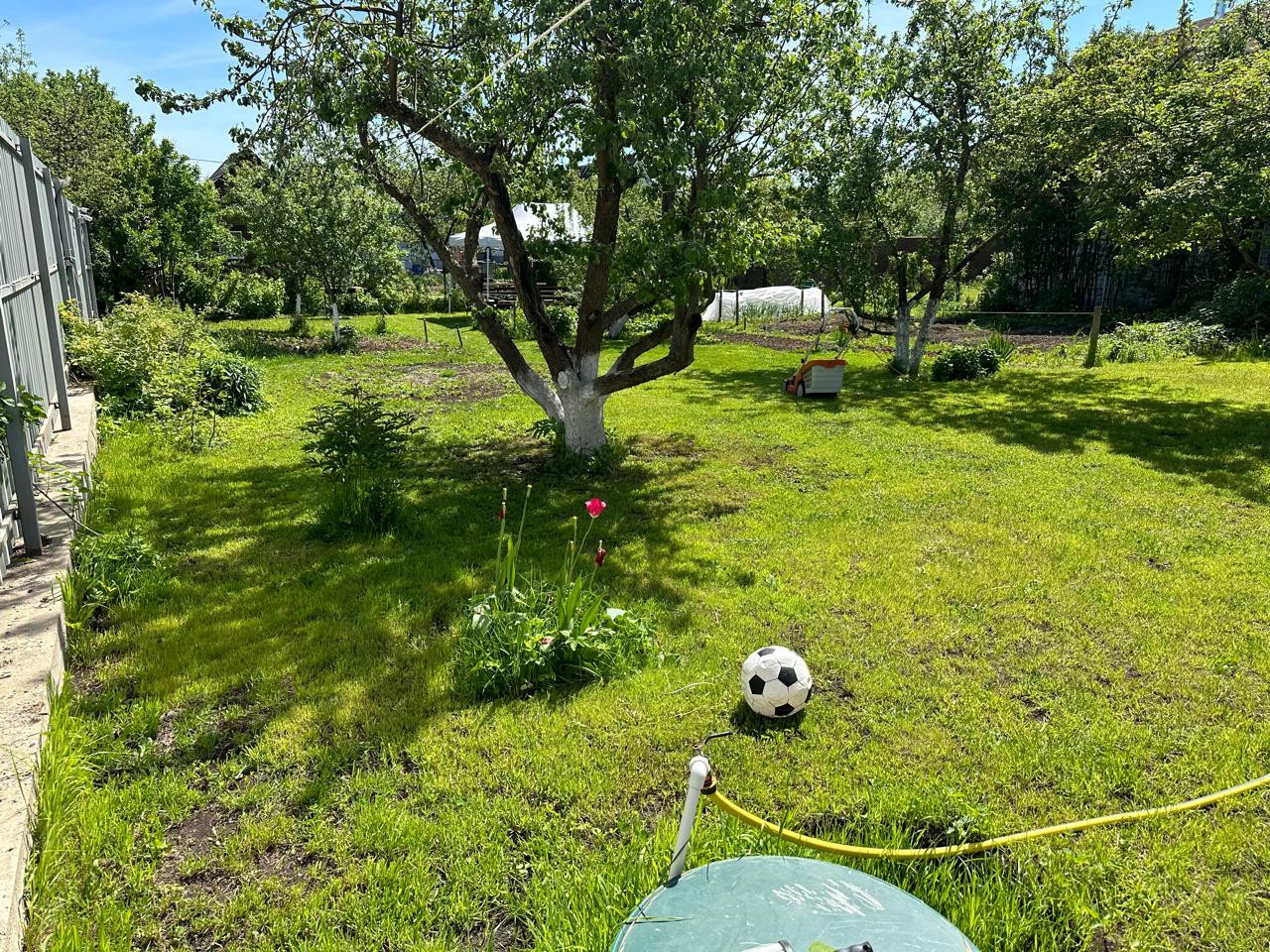 Участок 6 соток, бытовка, скважина (кисон), электричество 15 кВт, новый забор, электрические ворота, видеонаблюдение через интернет, участок сухой (поднимали песок+чернозем), летний водопровод.