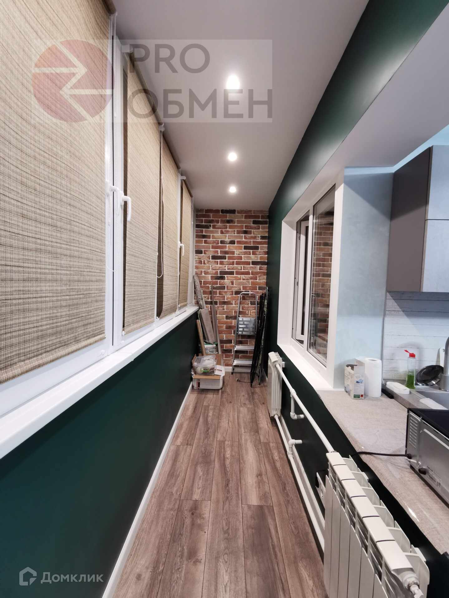 В квартире очень большая лоджия, на всю длину кухни и комнаты, что очень комфортно.