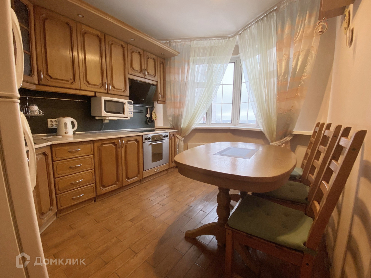 Есть стиральная машина (на кухне, фасад общий), микроволновая печь, холодильник.