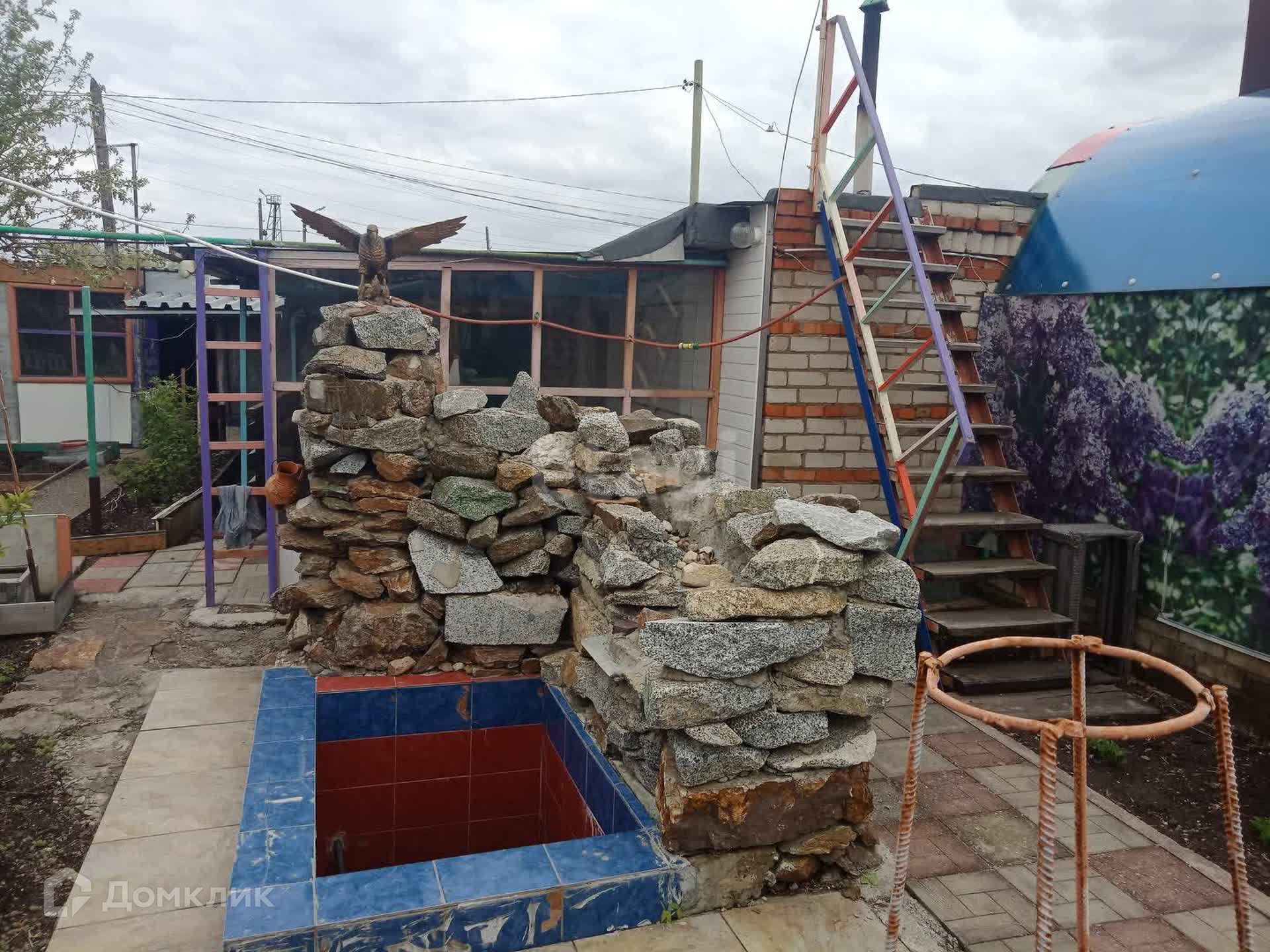 Ухоженный огород с виноградником, альпийская горка с фонтаном.