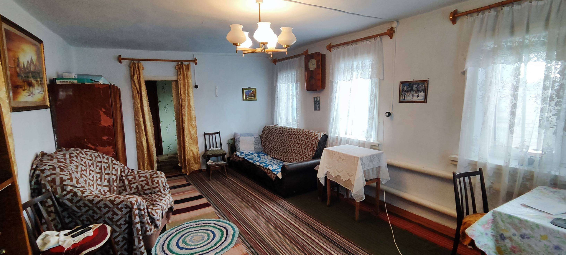 В доме веранда с кладовой комнатой, просторная прихожая, кухня, 4 комнаты и совмещённый санузел ( унитаз, душевая кабина, водонагреватель на 50 литров), глубокий сухой погреб.