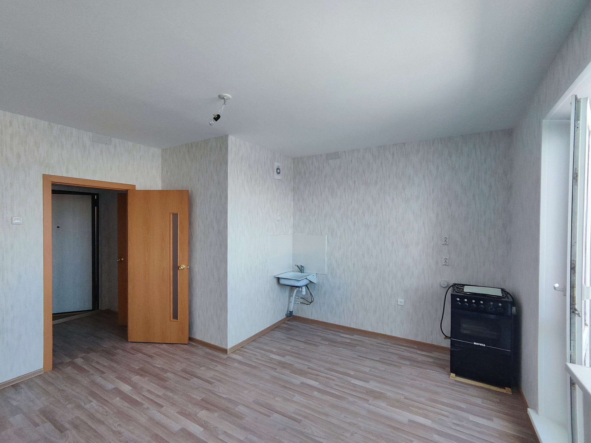 Студия (кухня) 16,71 кв. м. и комната 25,26 кв, м, совмещённый санузел, два балкона.