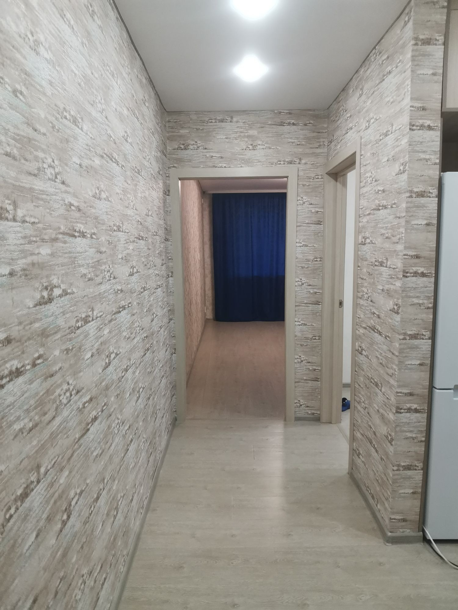 В квартире сделан свежий ремонт. После ремонта никто не жил. Санузел в кафеле, есть тёплый пол, новая сантехника. Проведена новая медная проводка по всей квартире. На полу светлый ламинат, на стенах нейтральные обои. Трубы отопления заменены на полипропиленовые. Натяжной потолок во всей квартире, в одной комнате современная люстра с пультом, в остальных потолочные светильники. Карнизы под шторы есть, сделаны сразу с натяжным потолком. На кухне можно самим установить мебель на свое усмотрение. Квартира угловая, находится в самом центре города, на второй линии, пыль от дороги не доходит. В пяти минутах от дома: Пятерочка, Тысяча мелочей, Магнит, Почта, Инвитро, Копеечка, Совкомбанк, Мир детства, аптеки, Магазин цветов, Красное и белое. В шаговой доступности Троицкий авиационный колледж. До поликлиники можно дойти пешком. Сразу за домом детский сад, недалеко школа. Квартира продаётся без мебели.
