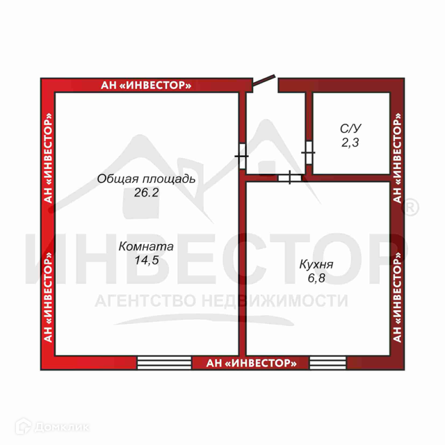Общая площадь 26.2 м2