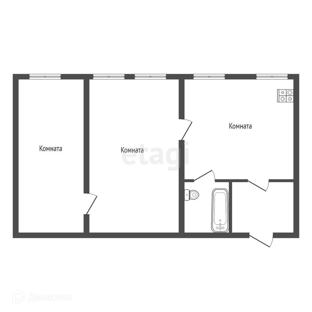 2-комнатная квартира, 39 м2, этаж 1 / 2, на продажу в Троицке, улица имени Степана Разина, 45