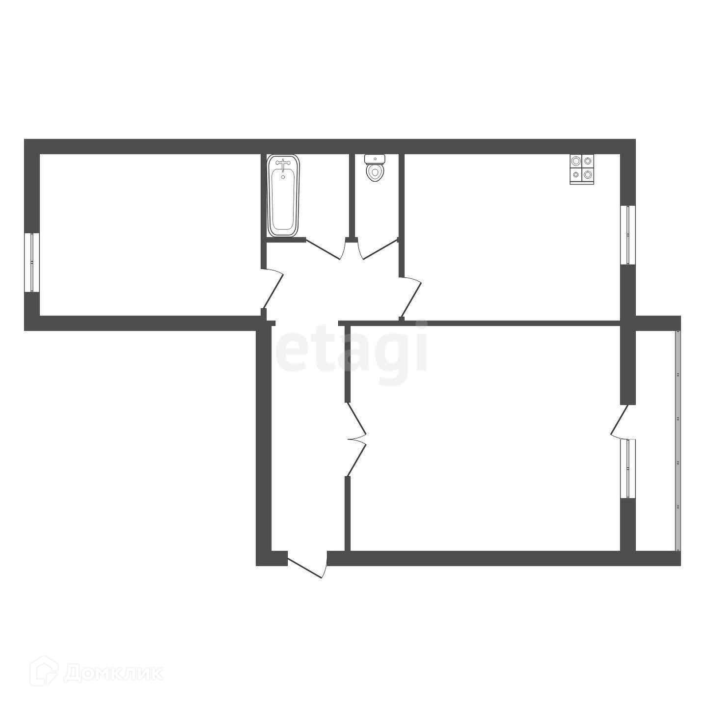 2-комнатная квартира, 48.9 м2, этаж 2 / 3, на продажу в Троицке, проспект Культуры, 7