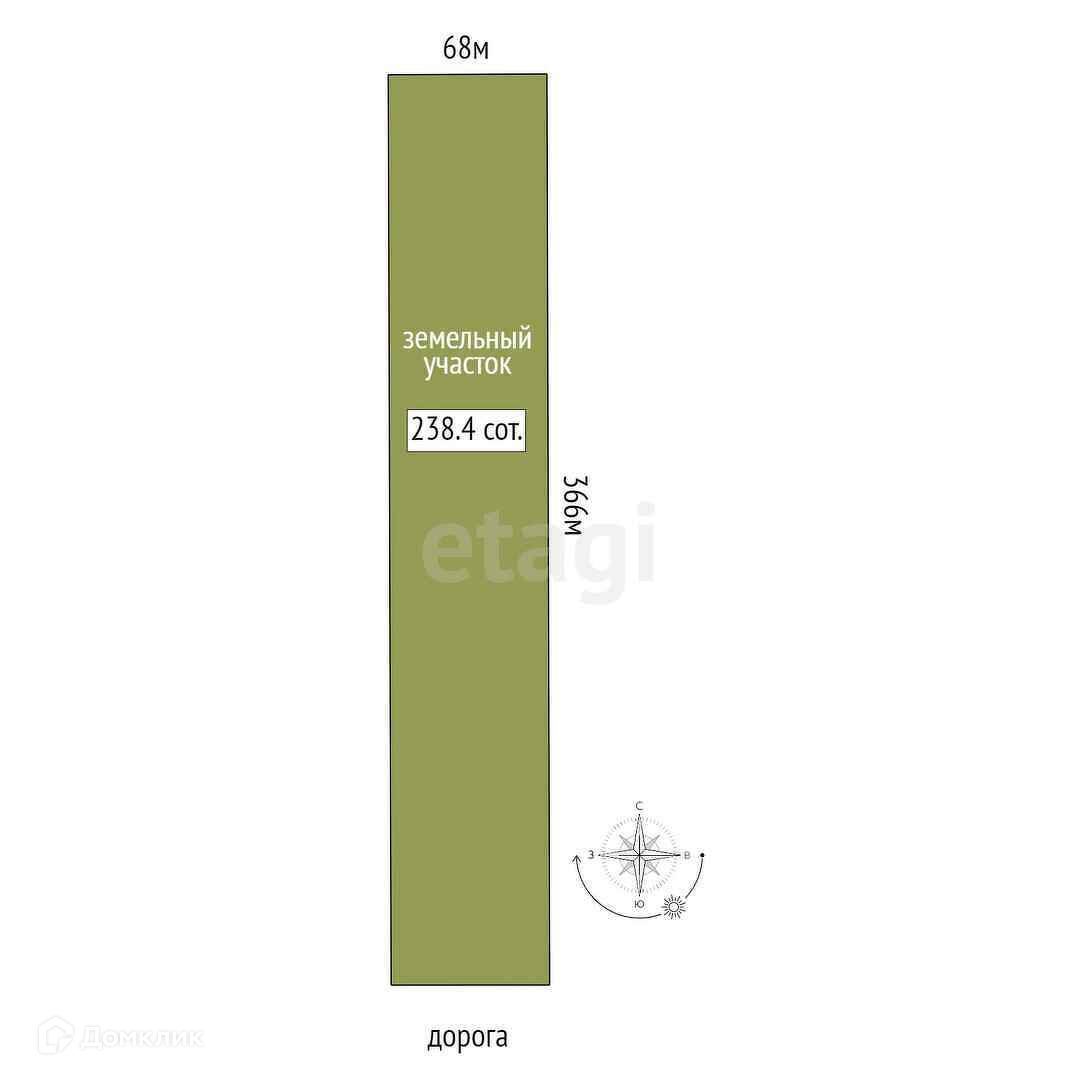 Успейте купить! Продается участок 2,38 га. Ровный, прямоугольной формы.