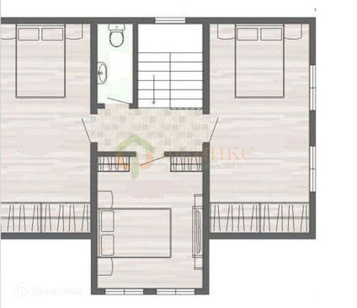 На втором этаже 3 спальни (15.4,15.4,10.0 кв.м.), коридор 5.67 кв.м, санузел 2.0 кв.м.