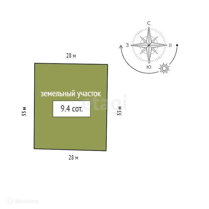 Площадь участка 9.4 сот.