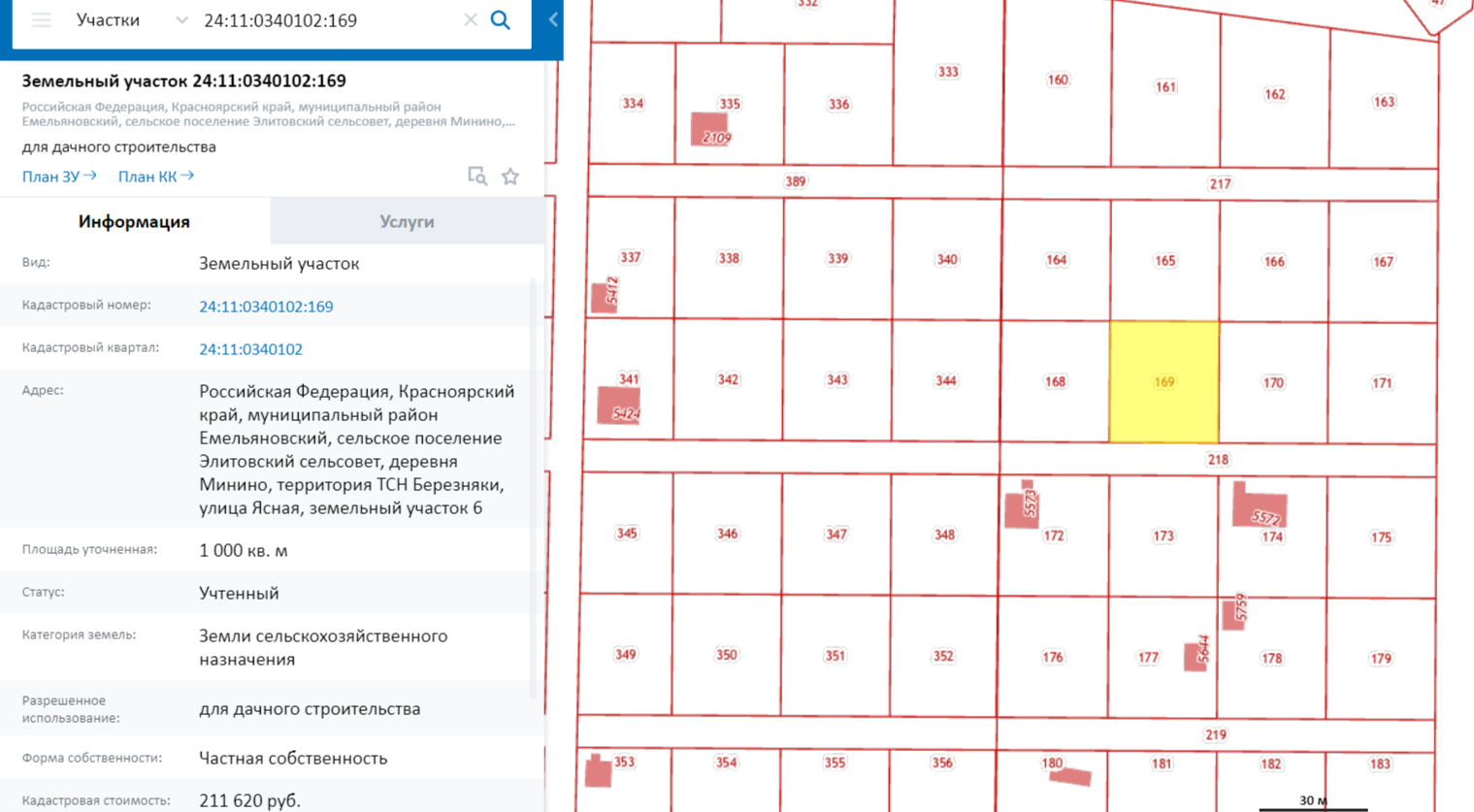 Кадастровый номер: 24:11:0340102:169