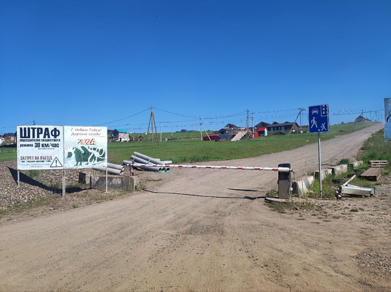 Въезд через загородный микрорайон "Отрадное", установлен шлагбаум и КПП