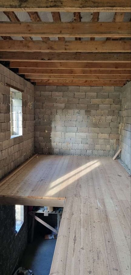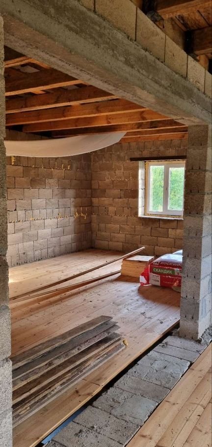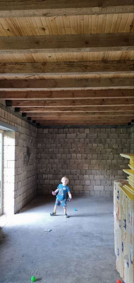 Пол второго этажа- деревянный, крыша- профнастил.