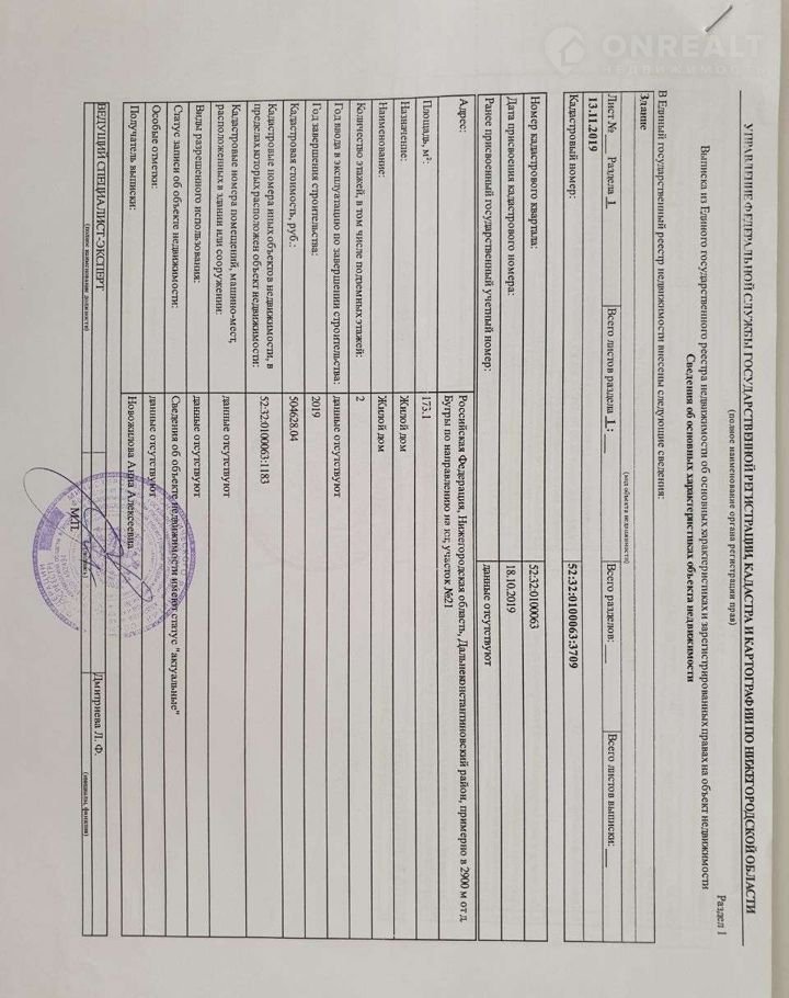 Стоимость недвижимости: