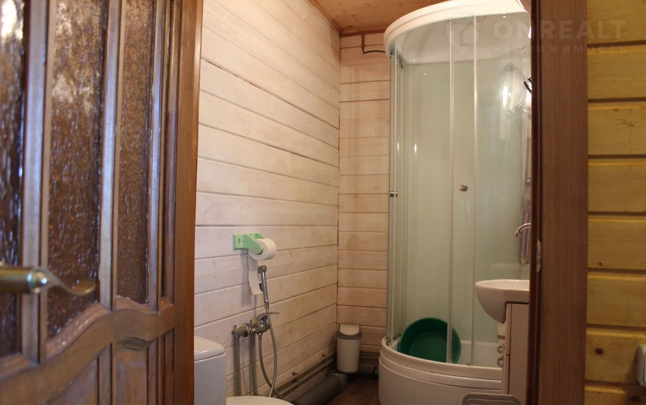 - НА 1-ом ЭТАЖЕ,который строился из бревна(200*150), находится ПРИХОЖАЯ, СОВМЕЩЁННЫЙ С/У (с душевой кабиной), КУХНЯ (с печкой) и спальня (ГОСТИНАЯ)