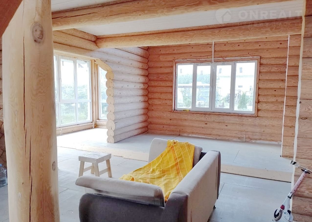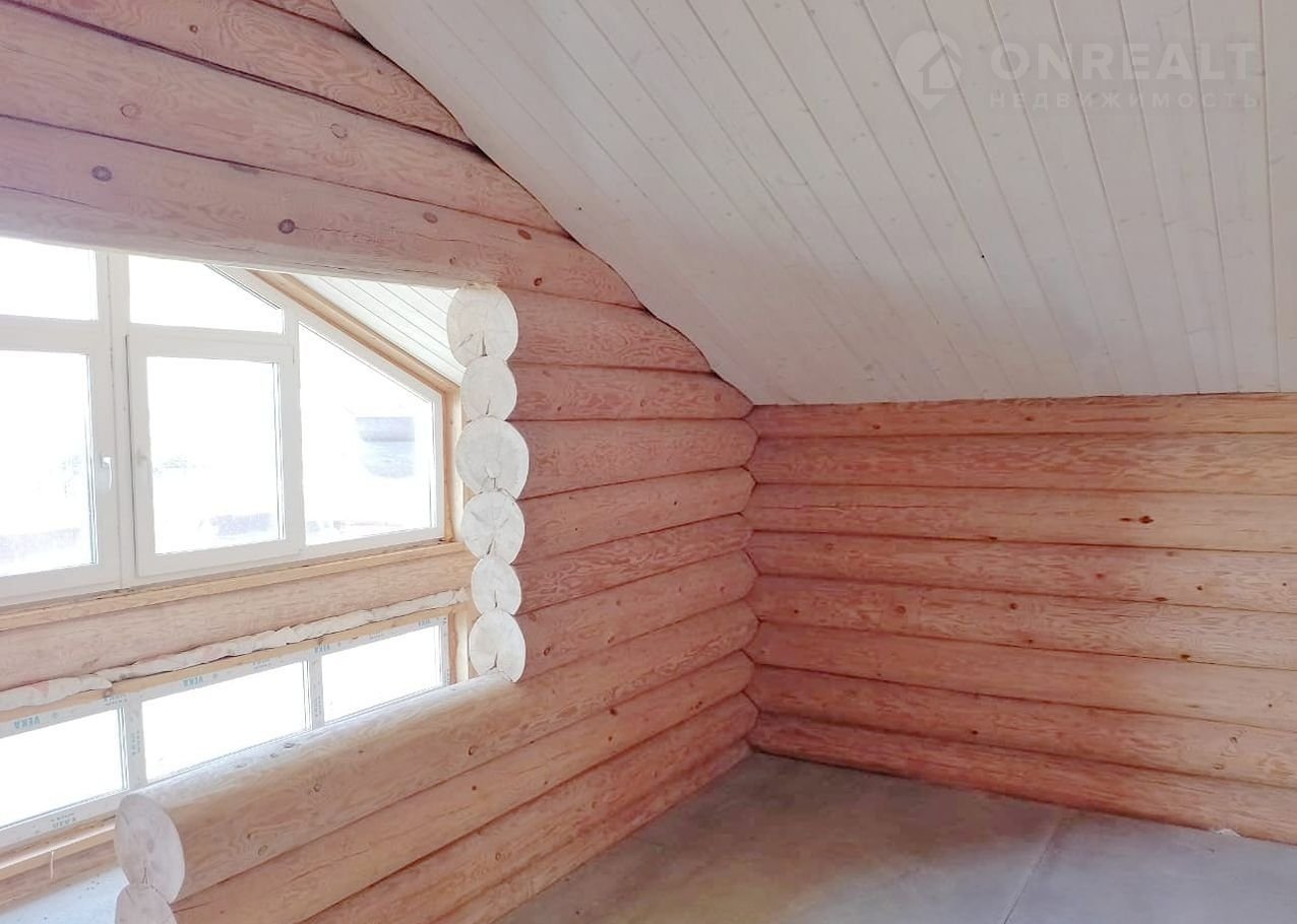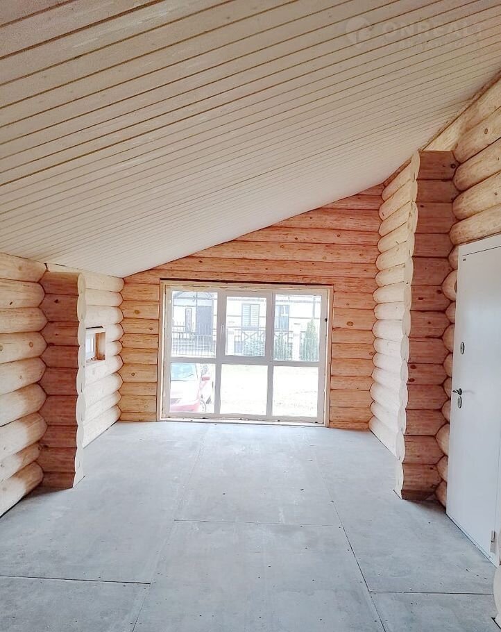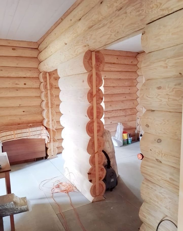 Дом чень светлый, теплый, качественно срублен вручную из сосновых бревен (диаметр бревна 26 см), стены отшлифованные внутри, утеплены межэтажные перекрытия и крыша, пол подготовлен для укладки покрытия. Газ заведен в дом, осуществлена разводка системы отопления.