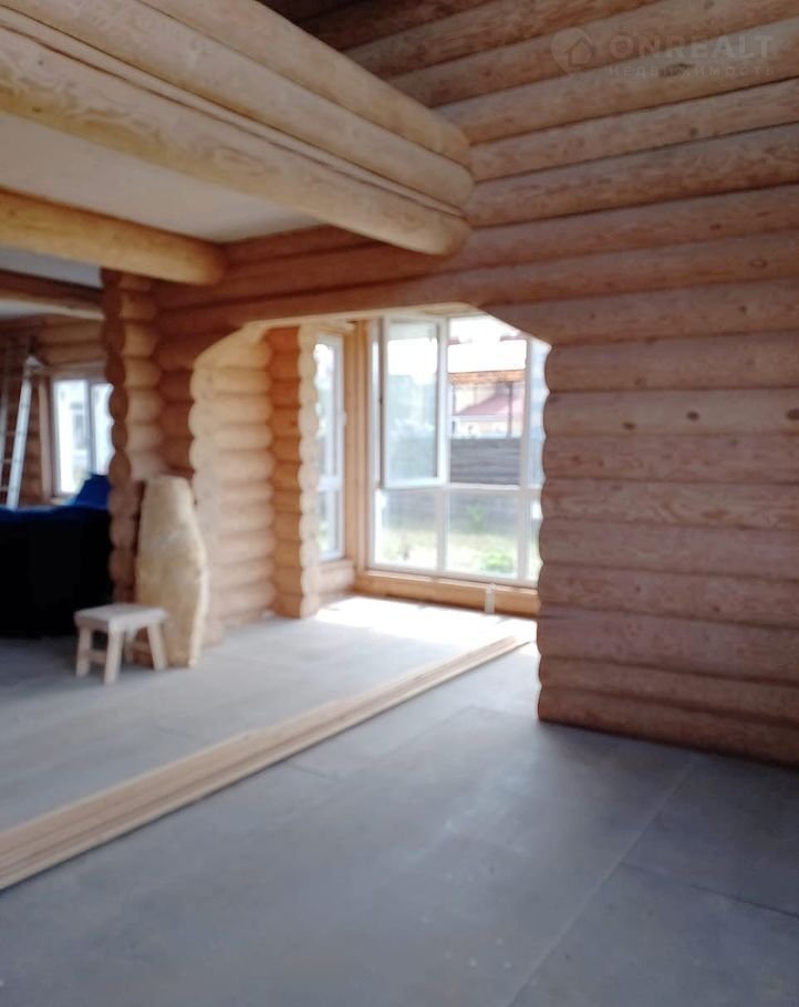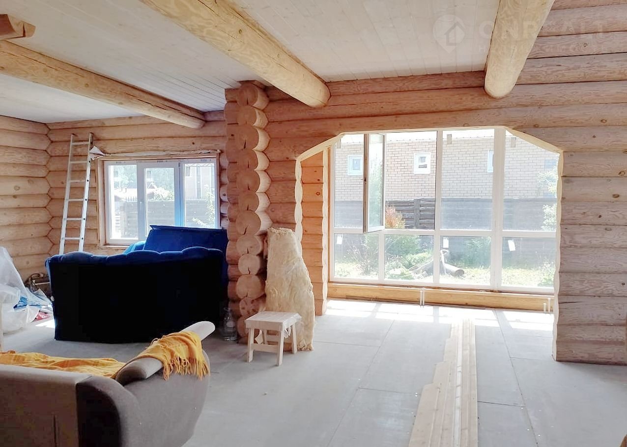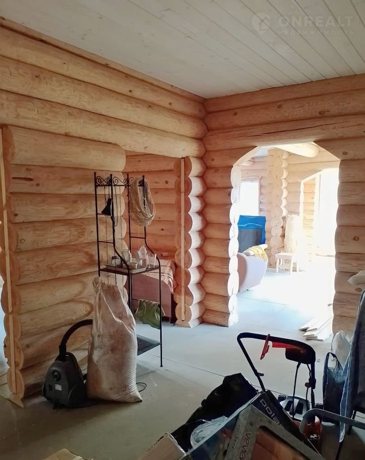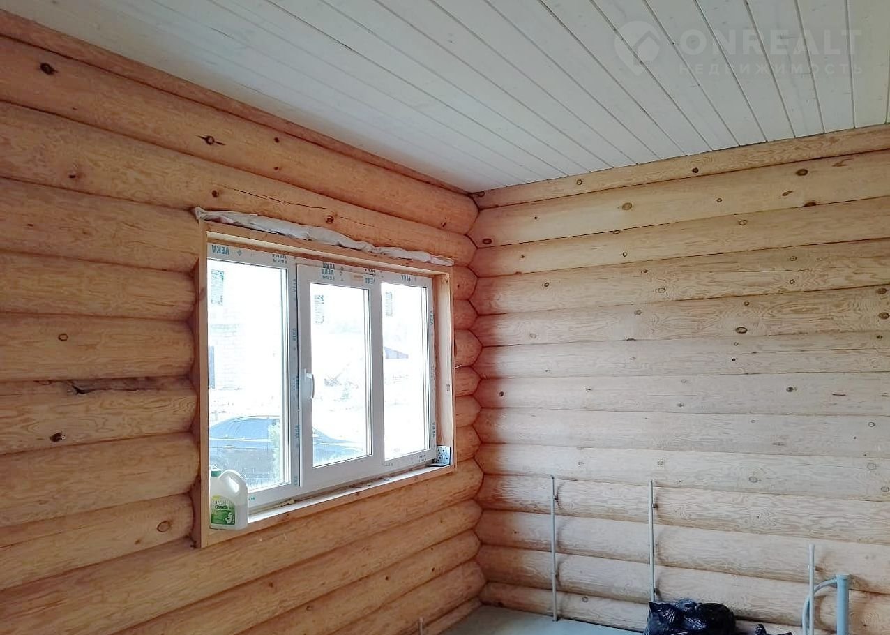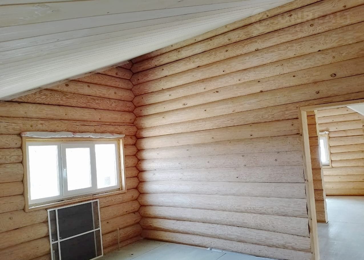 Дом чень светлый, теплый, качественно срублен вручную из сосновых бревен (диаметр бревна 26 см), стены отшлифованные внутри, утеплены межэтажные перекрытия и крыша, пол подготовлен для укладки покрытия. Газ заведен в дом, осуществлена разводка системы отопления.