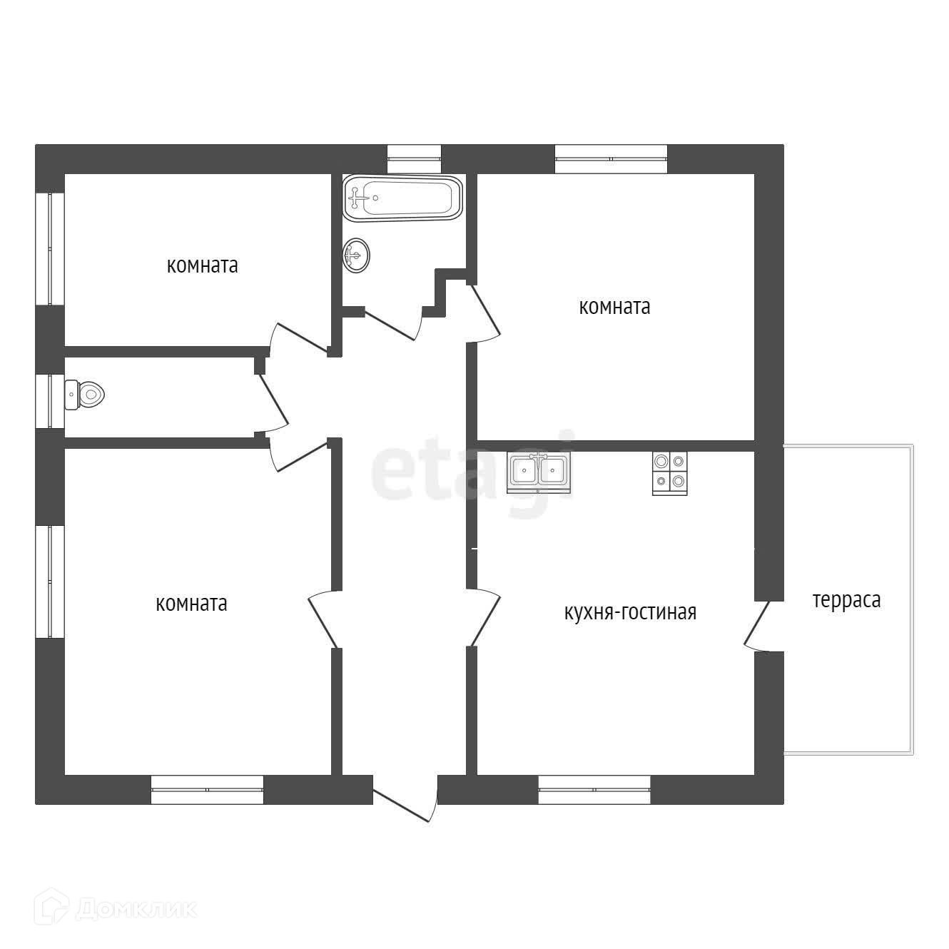 Дом будет в предчистовой отделке с теплыми водяными полами. Отдельный выход на террасу из кухни.