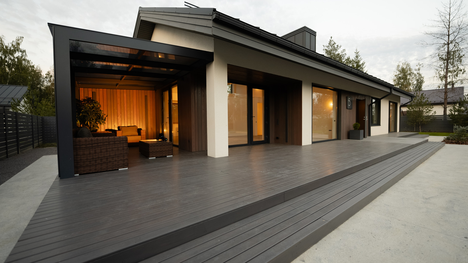 - Дежурное освещение, фасадное освещение и ночная подсветка для удобства.